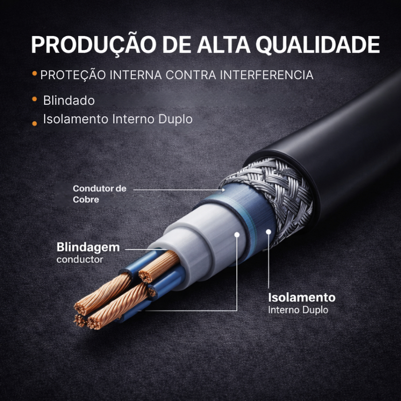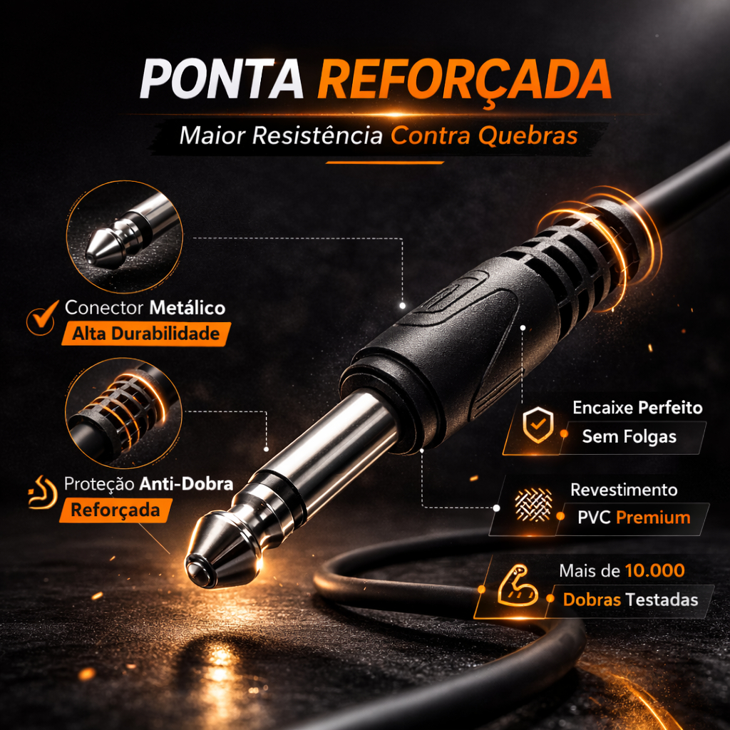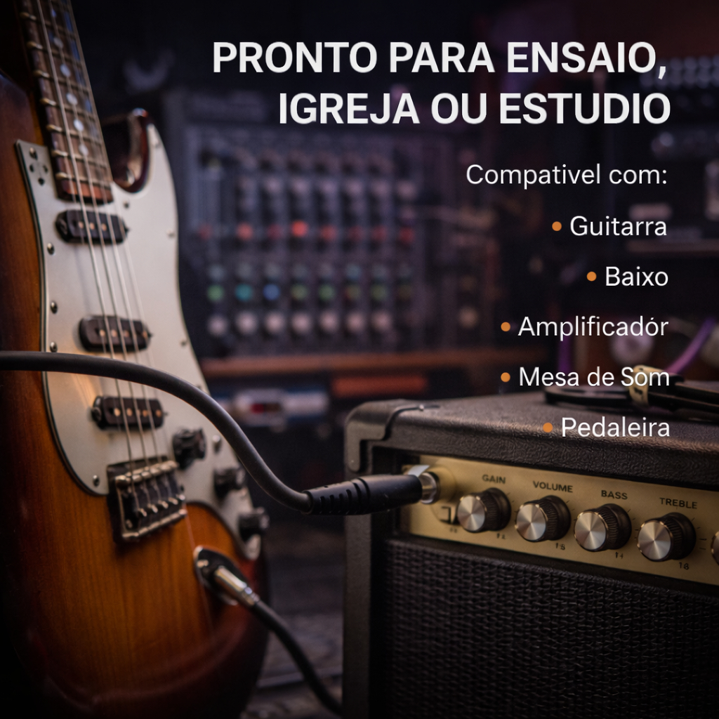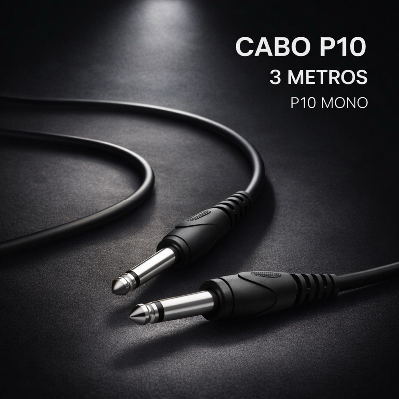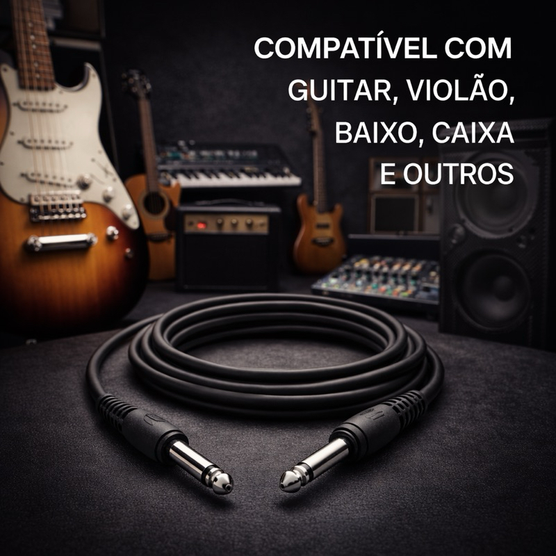 Cabo P10 3 Metros Para Violão e Guitarra Blindado Profissional Reforçado Durabilidade