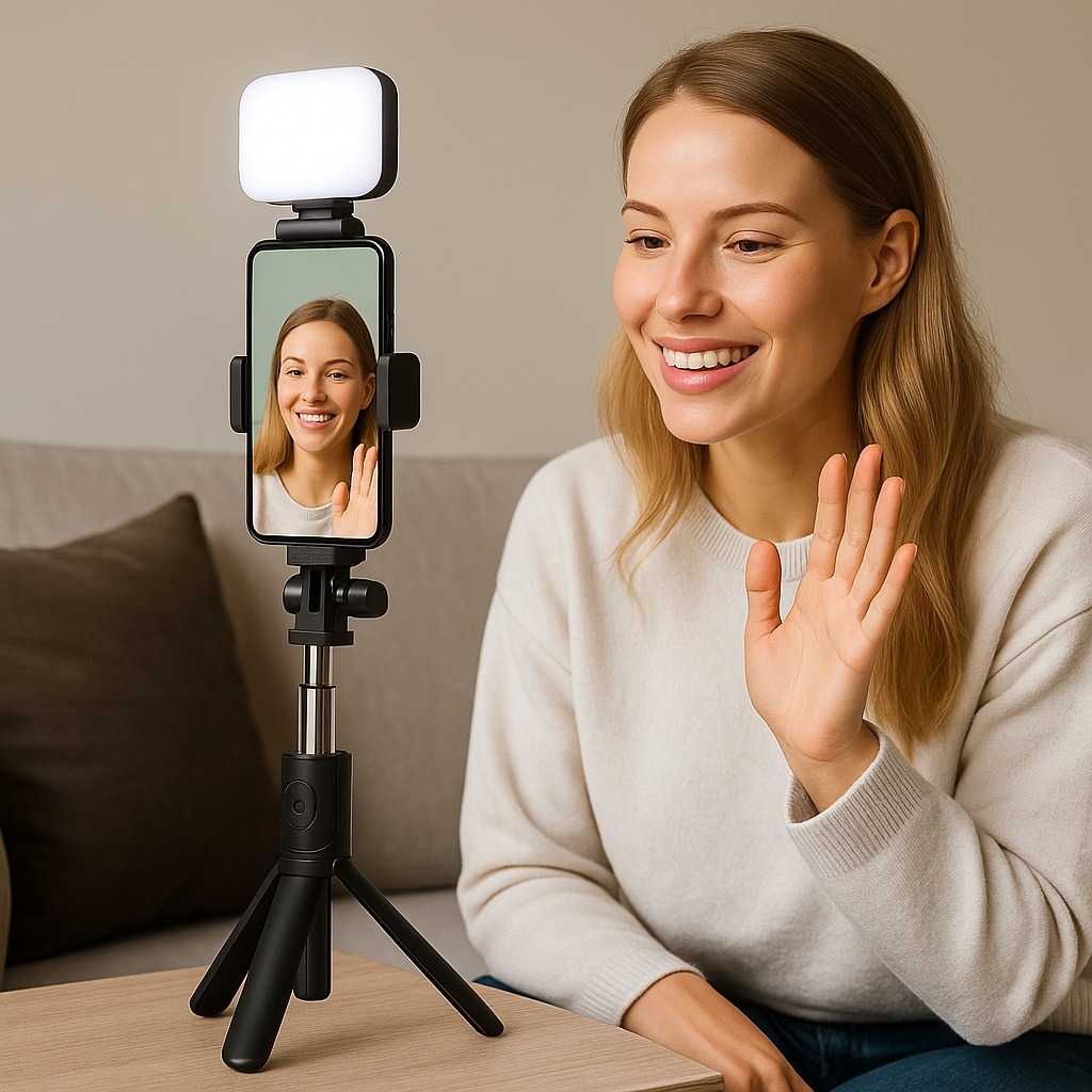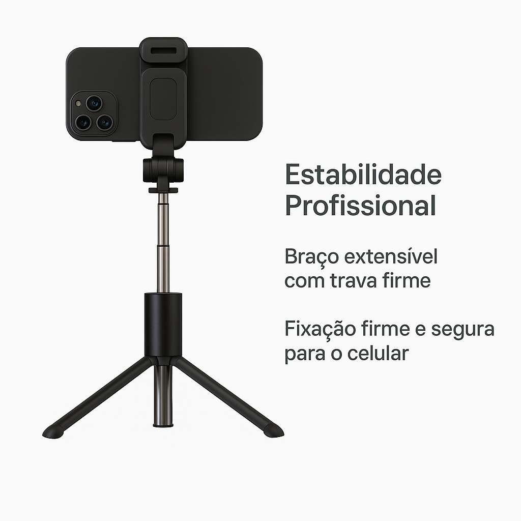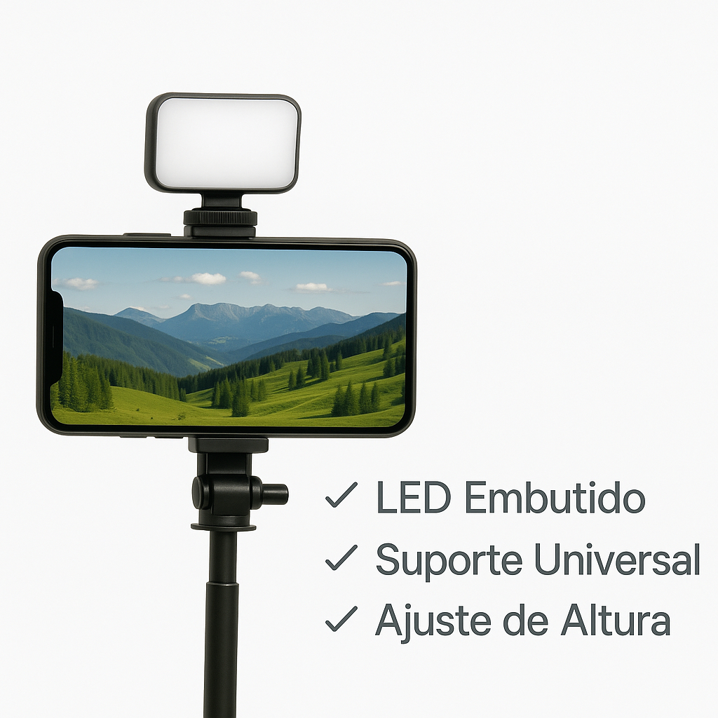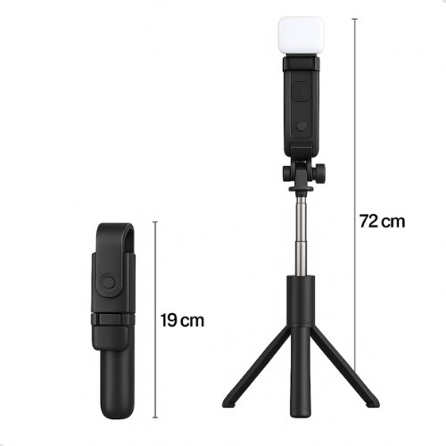 Tripé Bastão de Selfie com LED Embutido, Controle Remoto e Altura Ajustável 72cm Portátil