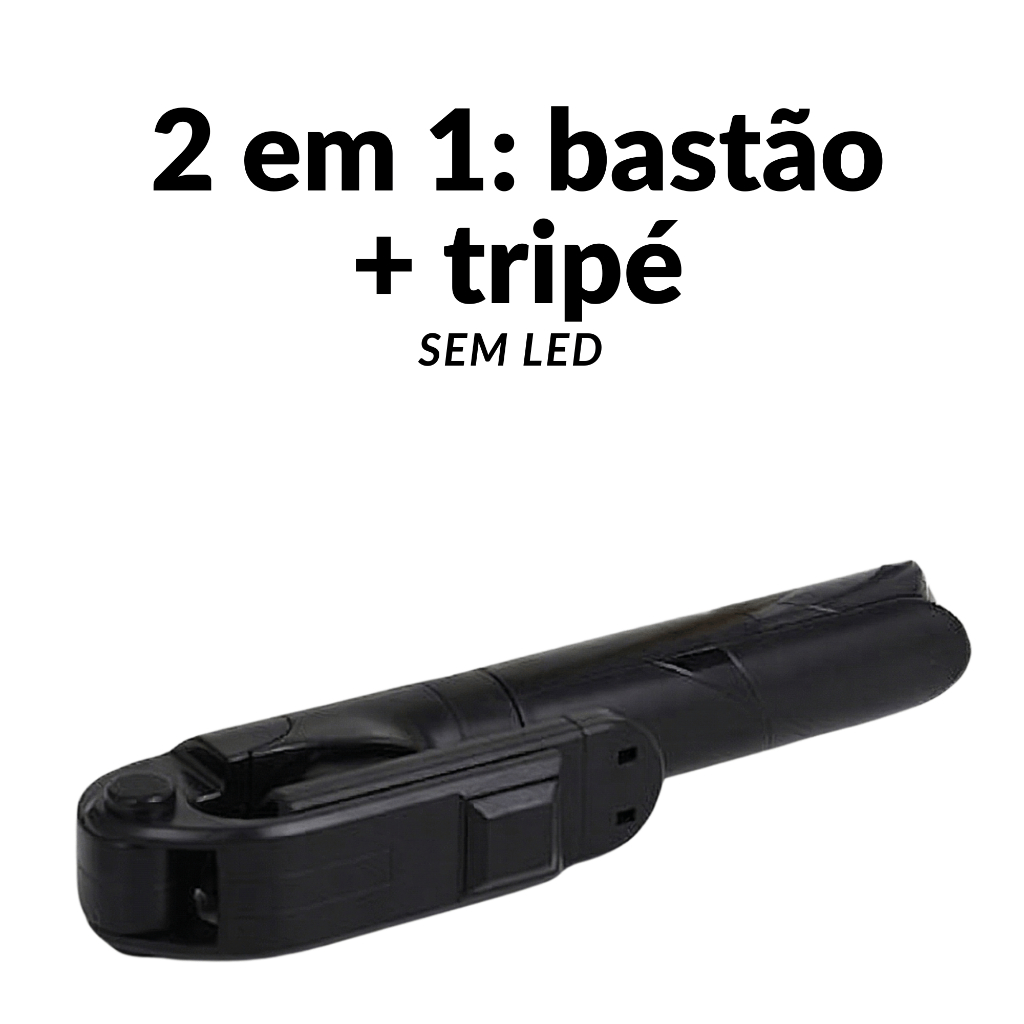 Tripé Bastão de Selfie com LED Embutido, Controle Remoto e Altura Ajustável 72cm Portátil