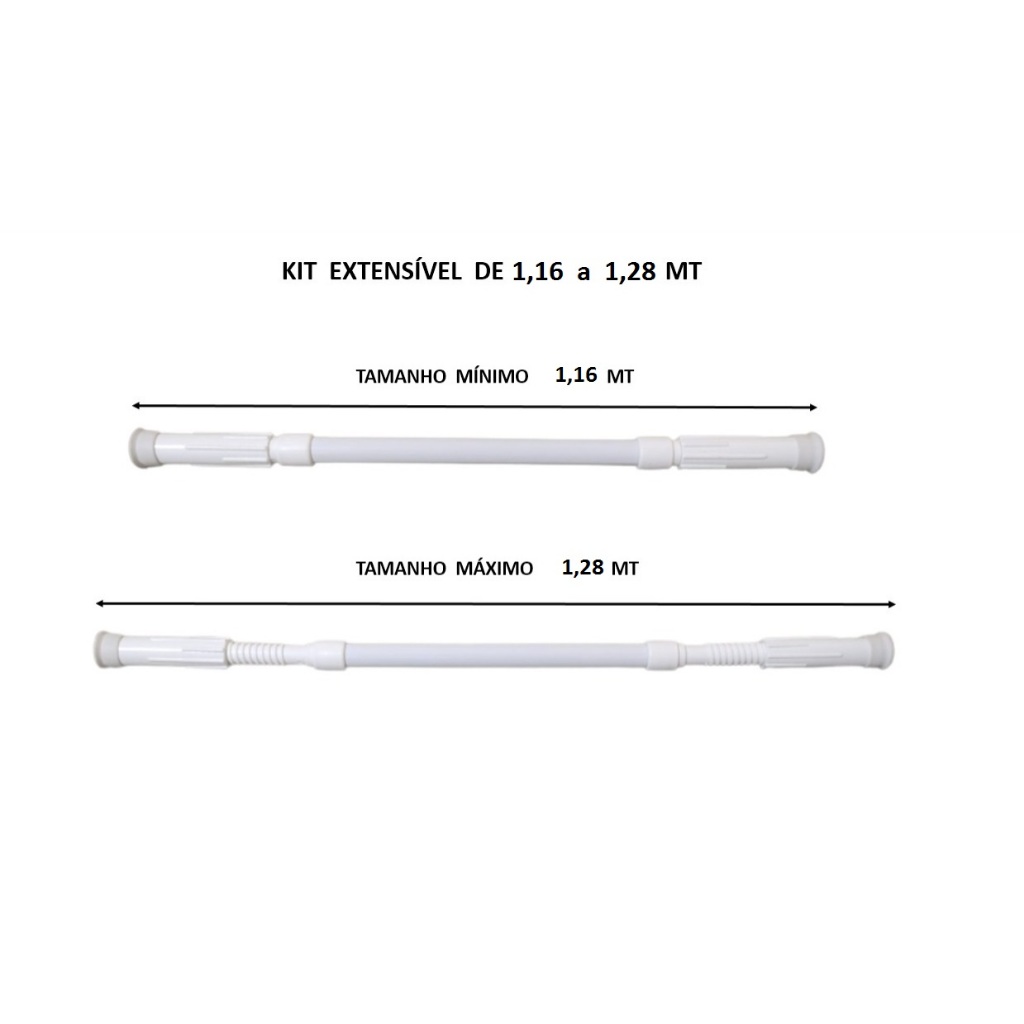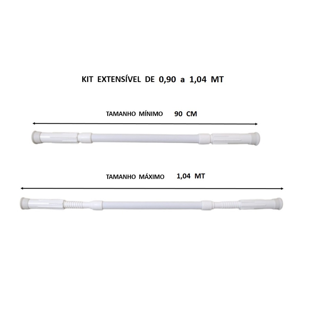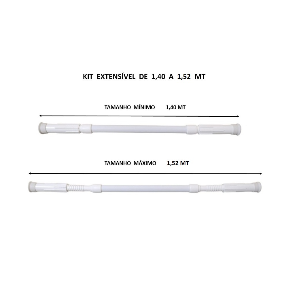 Varão extensível de 90 cm até 1,52 mts para Cortina Box de banheiro Pia de Cozinha