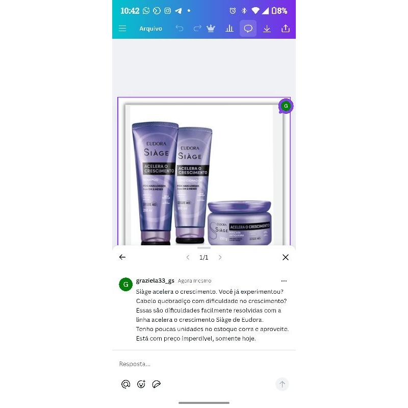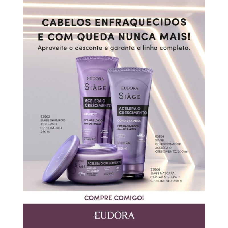 kit acelera o crescimento #Siáge Eudora três produtos shampoo máscara e condicionador
