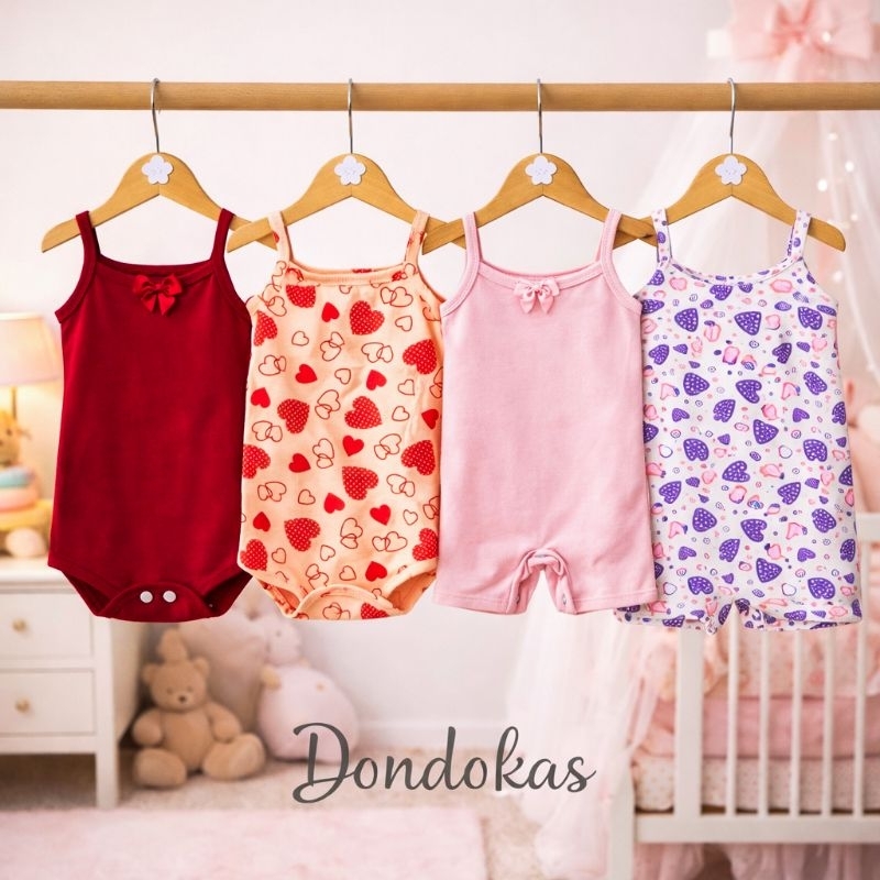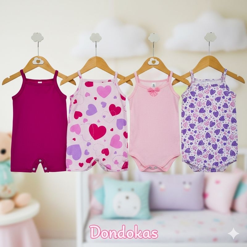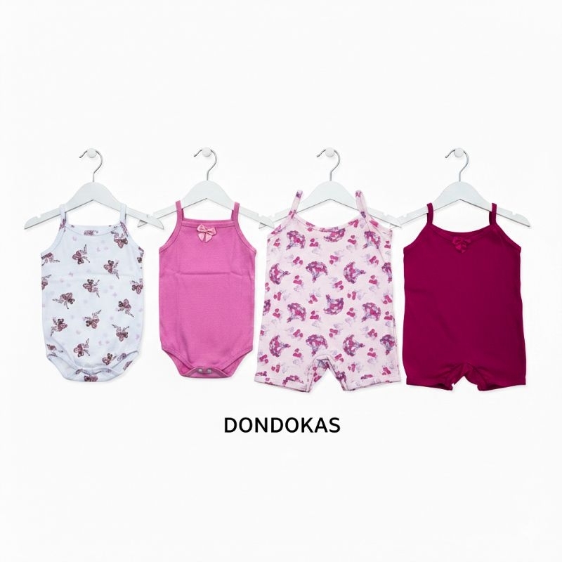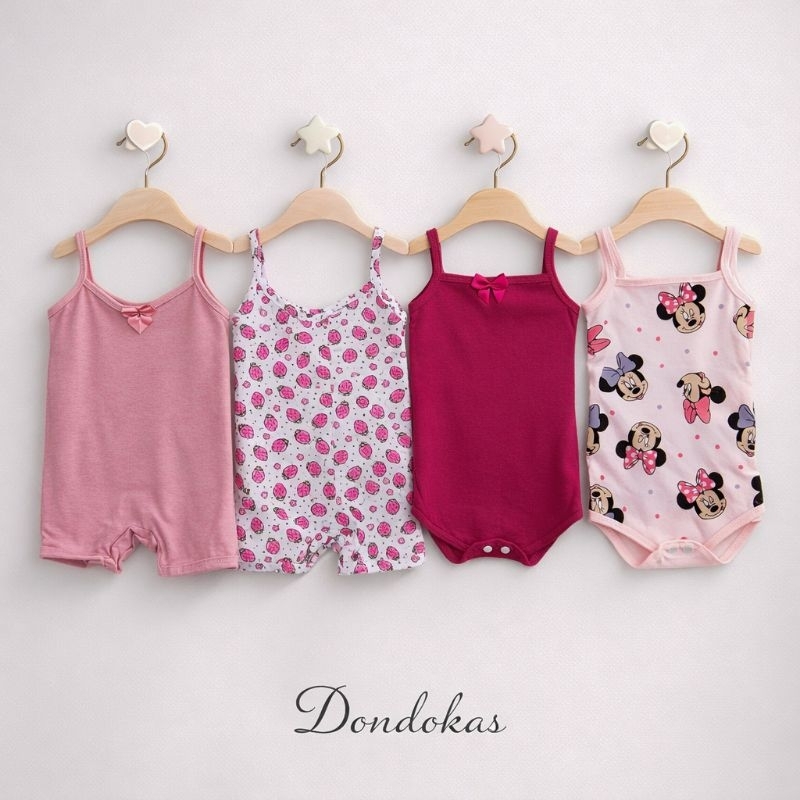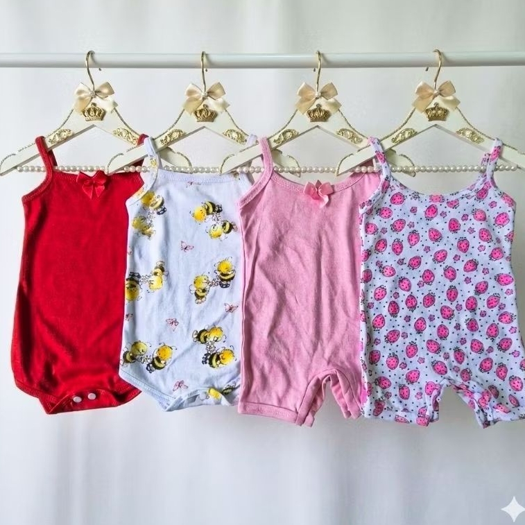 kit 4 Peças 2 Macaquinho bebe e 2 Body Alcinha bebe menina Roupa de Bebe Algodão M G GG