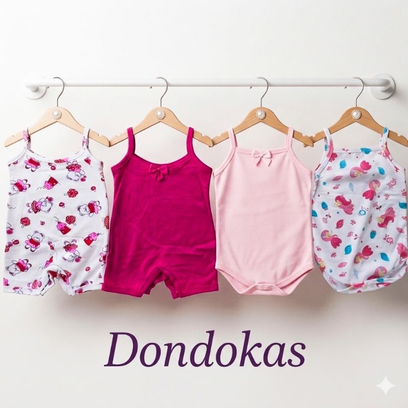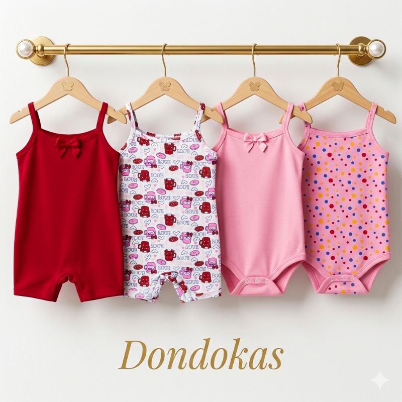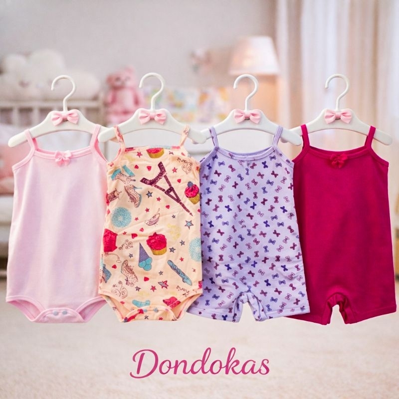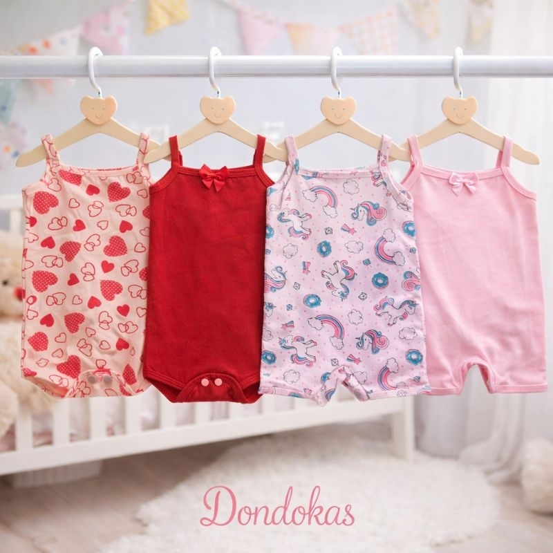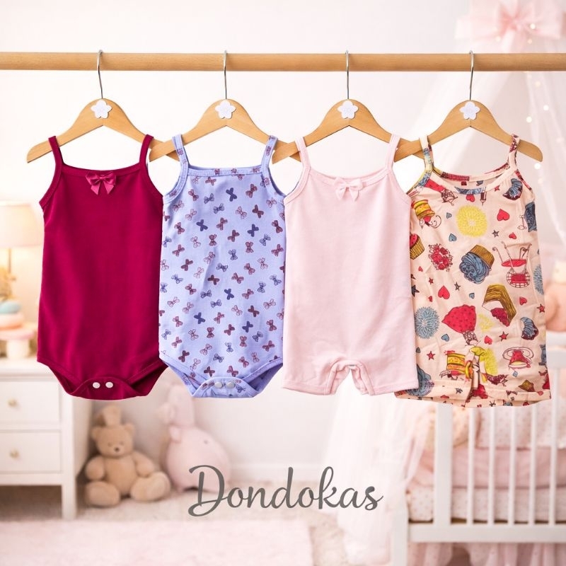 kit 4 Peças 2 Macaquinho bebe e 2 Body Alcinha bebe menina Roupa de Bebe Algodão M G GG