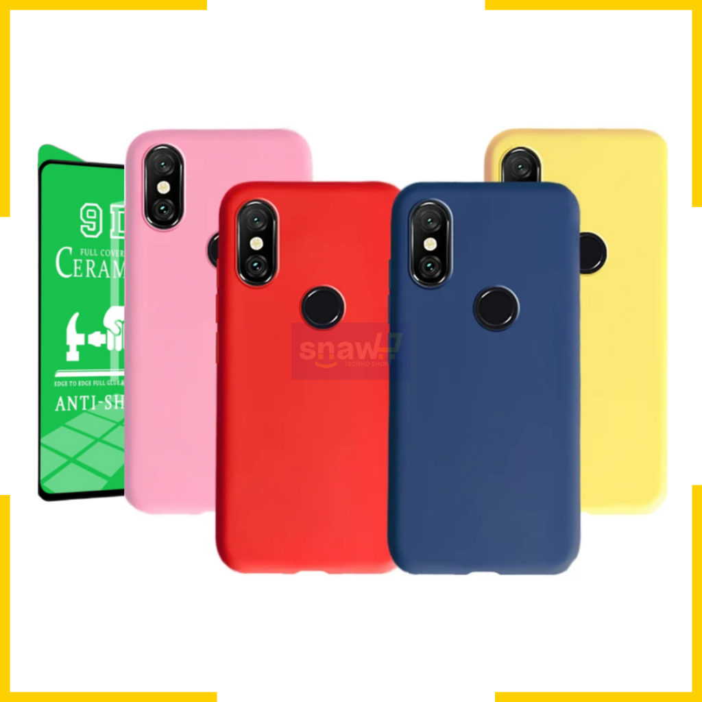 Kit Protetora Capinha - Note 6 Pro - Com Película ceramica flexivel Redmi Silicone Aveludado Capa de Celular Case