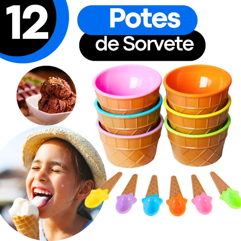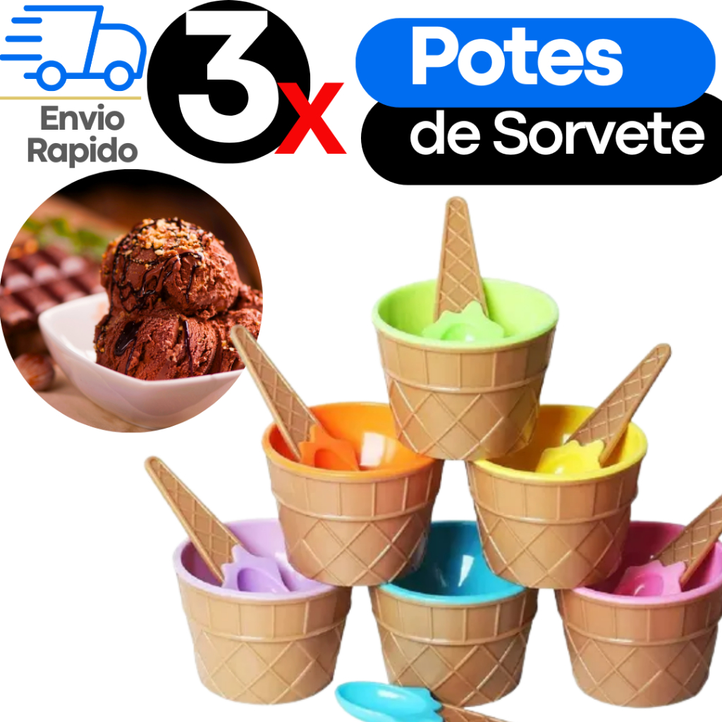 Potes de Sorvete com Colher Tigelas Sobremesa 3/6/12