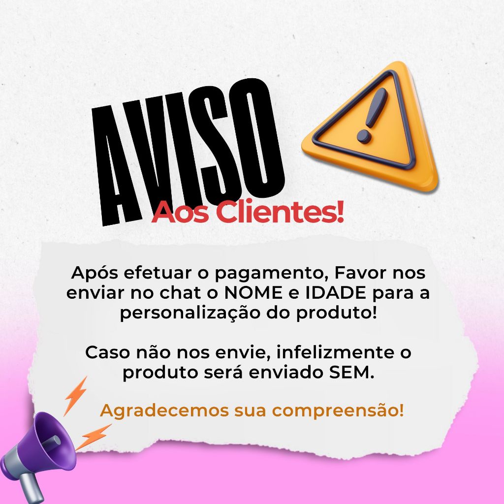 Sob encomenda: envio após 3 dias da compra