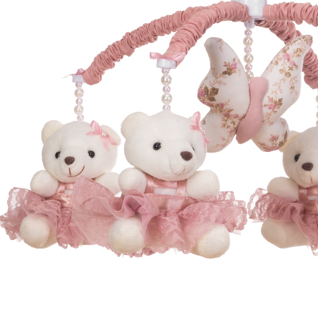 Mobile Para Berço Musical Giratório Princesa Borboleta Rosé