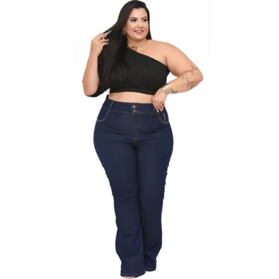 Calça Jeans Feminina Cintura Alta Plus Size Flare Elastano qualidade
