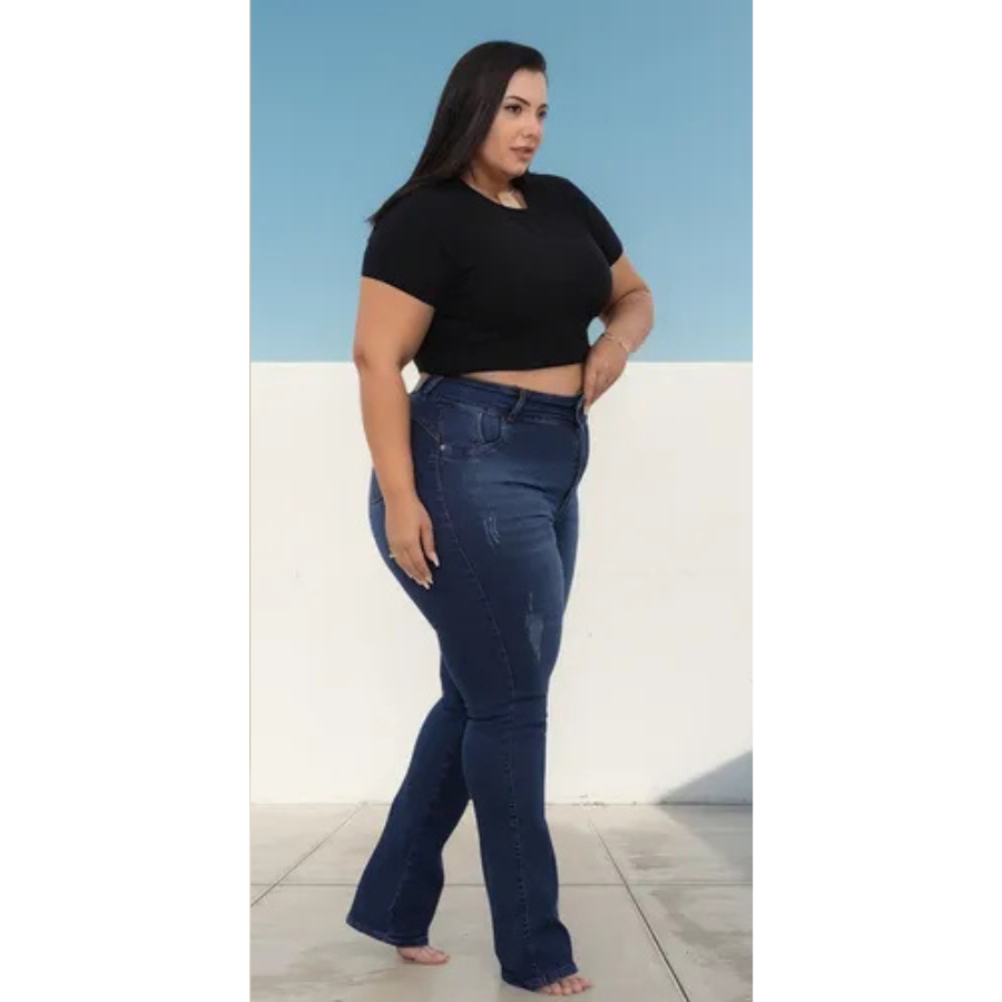 Calça Jeans Feminina Cintura Alta Plus Size Flare Elastano