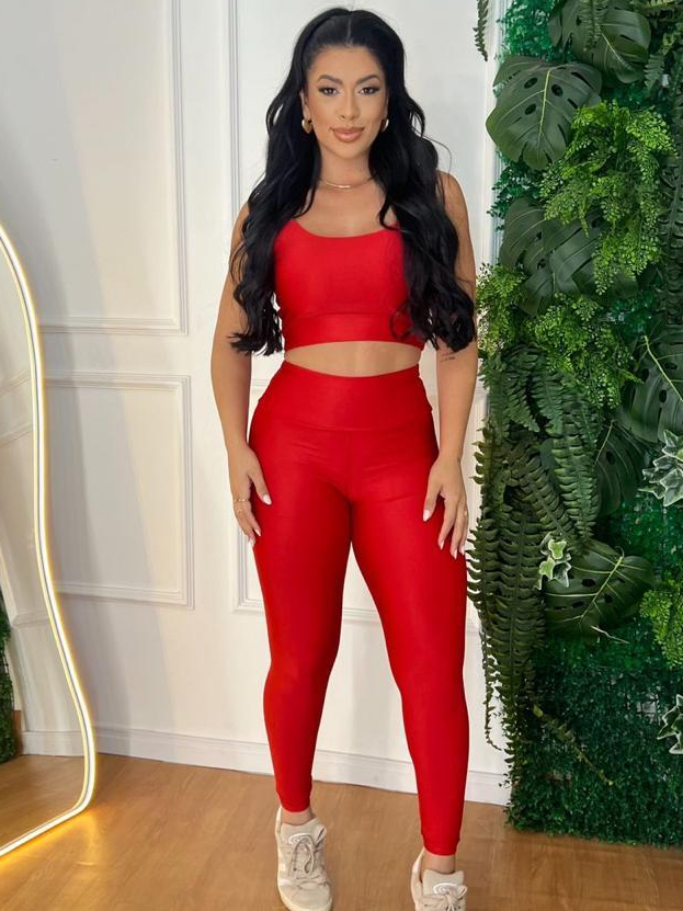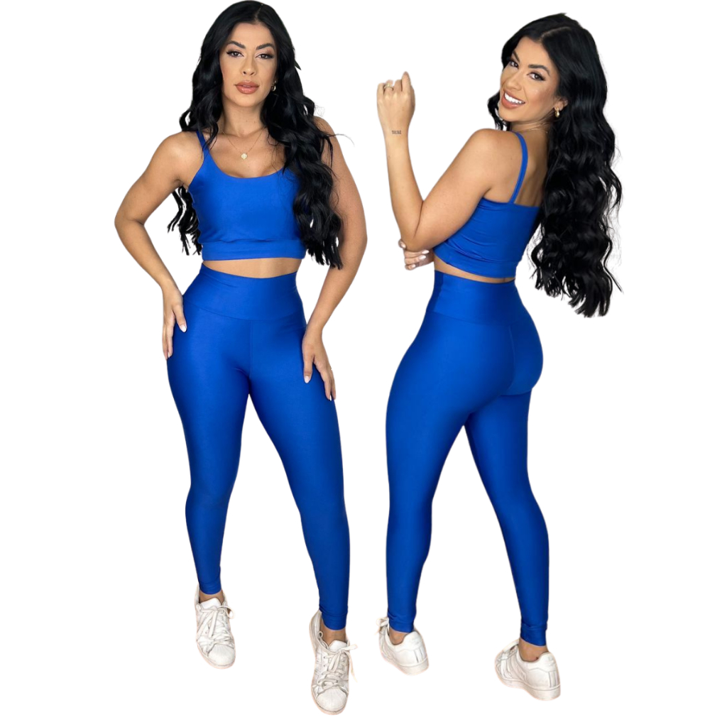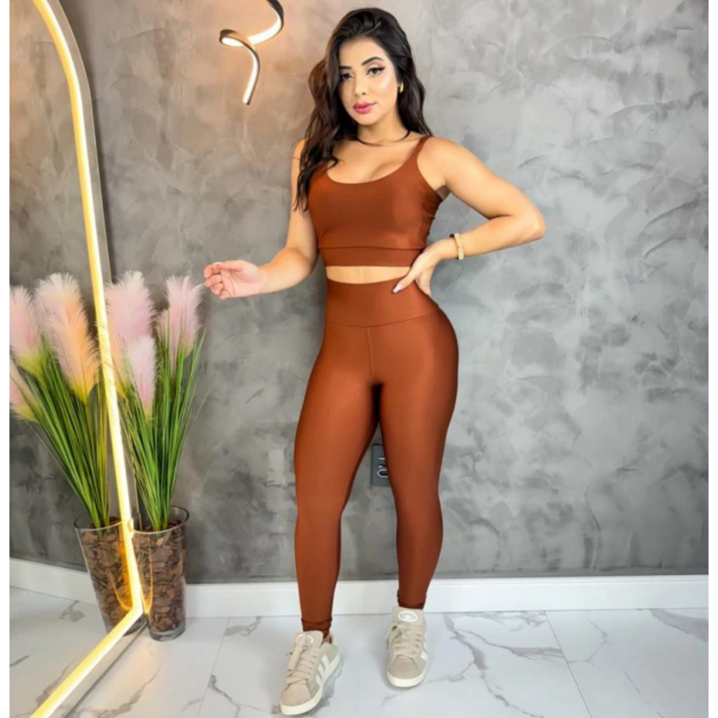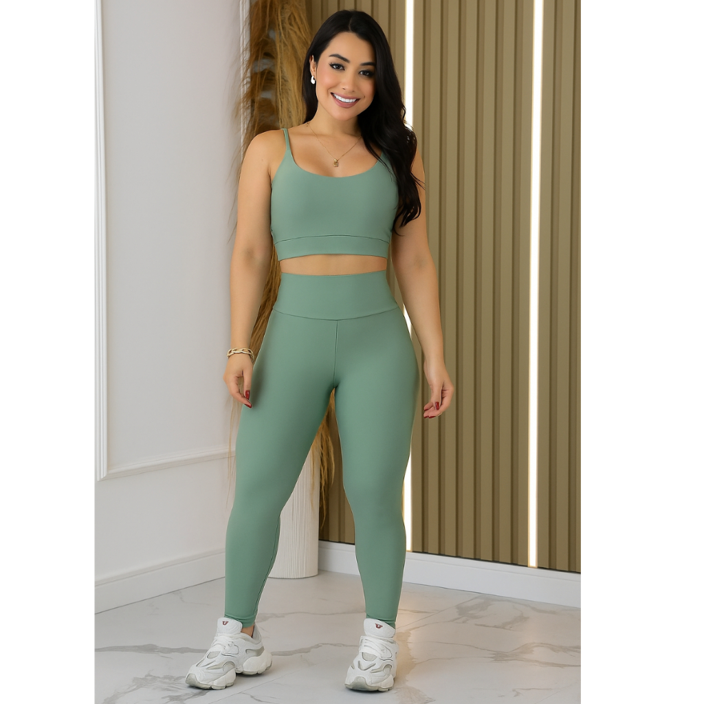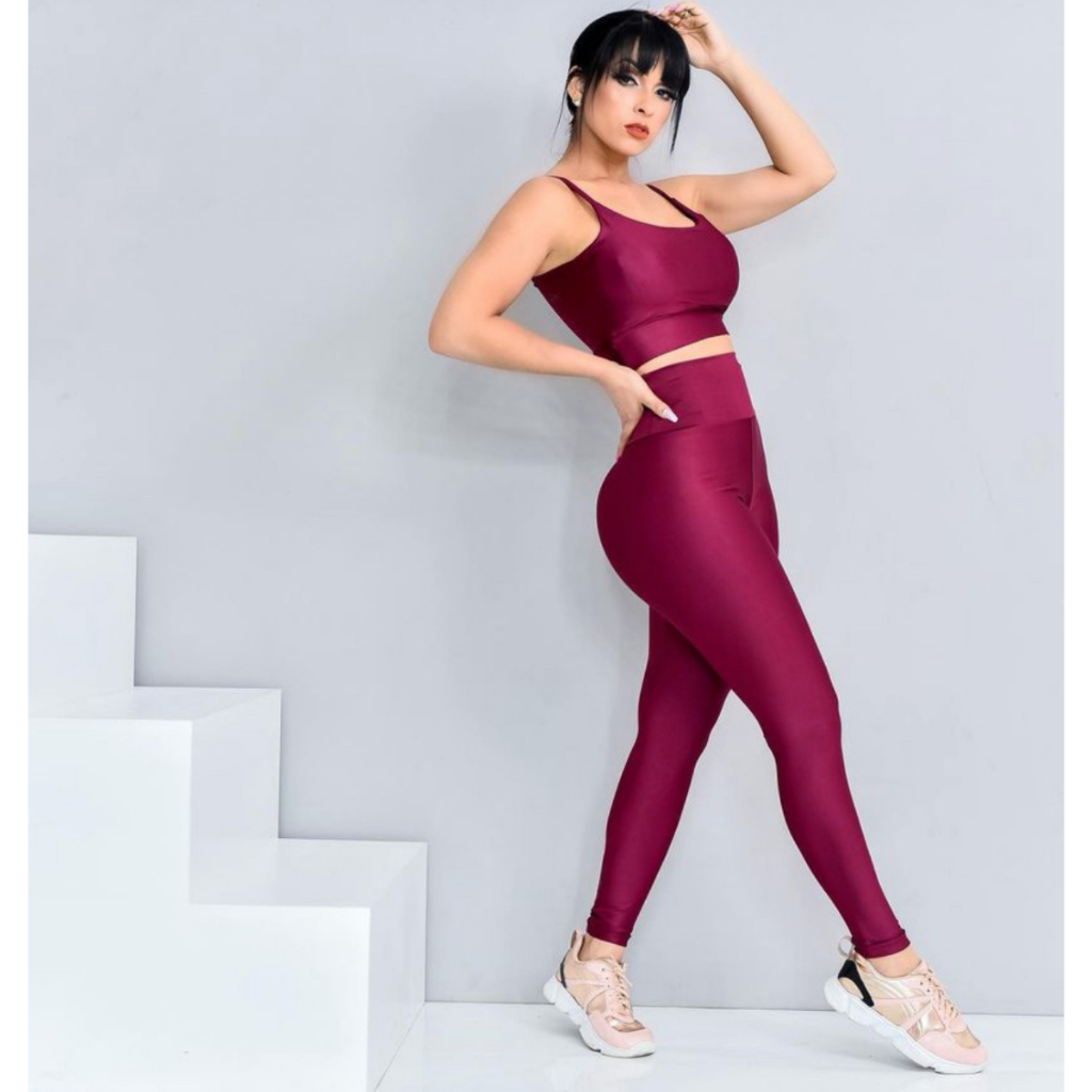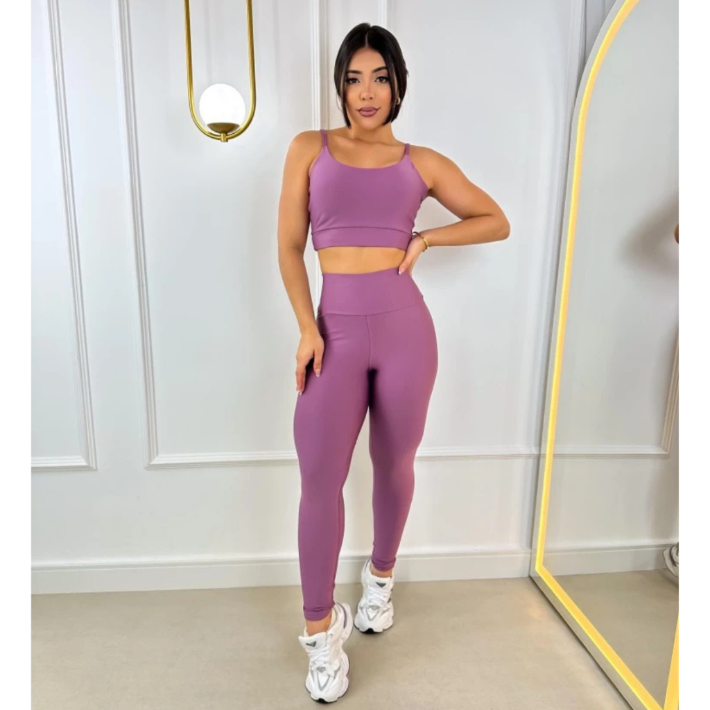 Conjunto Academia Fitness Calça Legging e Top Suplex Cropped Com Bojo Removível Cos Alto