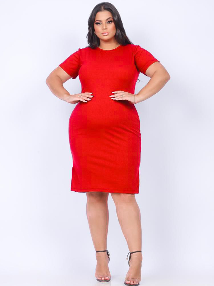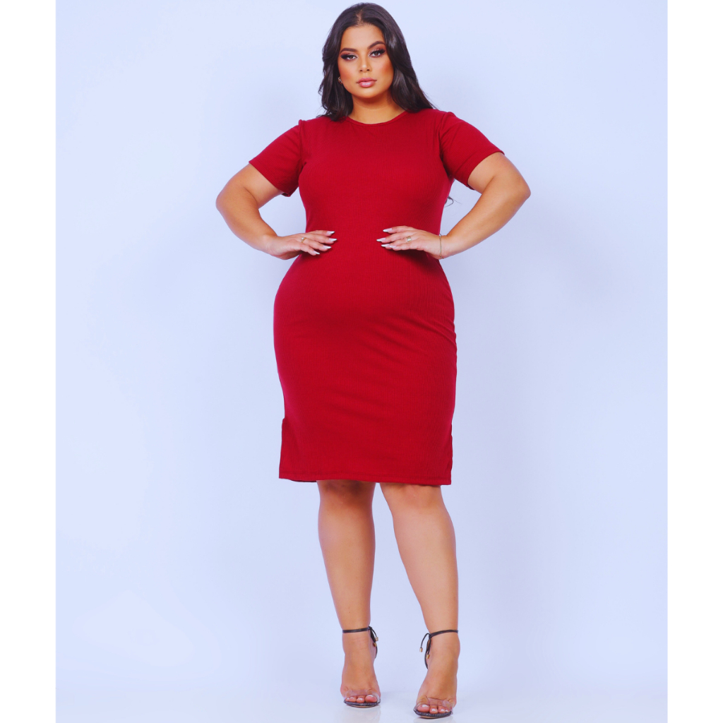 Vestido Feminino Plus Size Gordinha Malha Canelado Básico Manguinha
