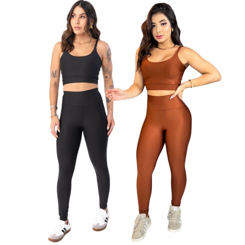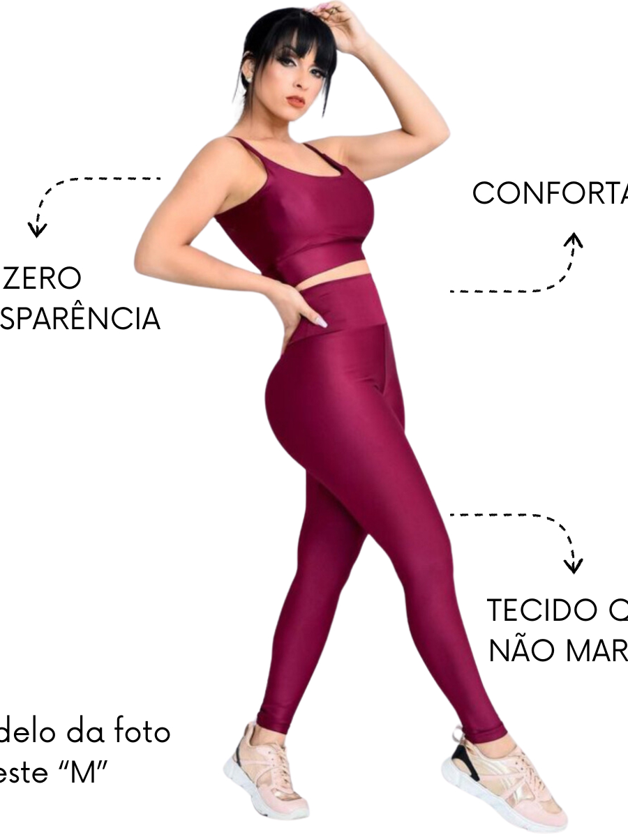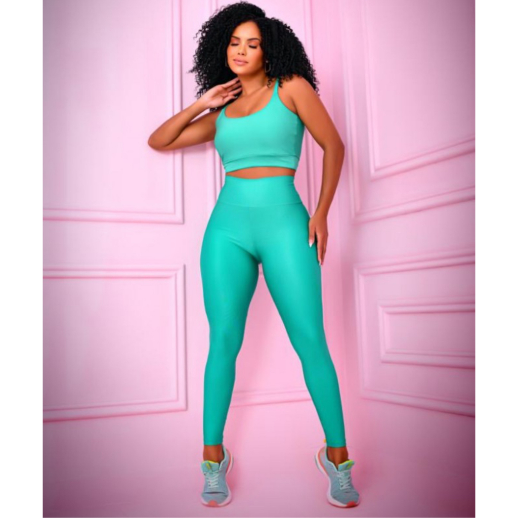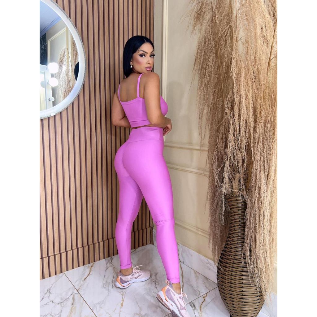 Conjunto Fitness Calça Legging Academia Cos Alto Top Com Bojo Removível Atividade Física