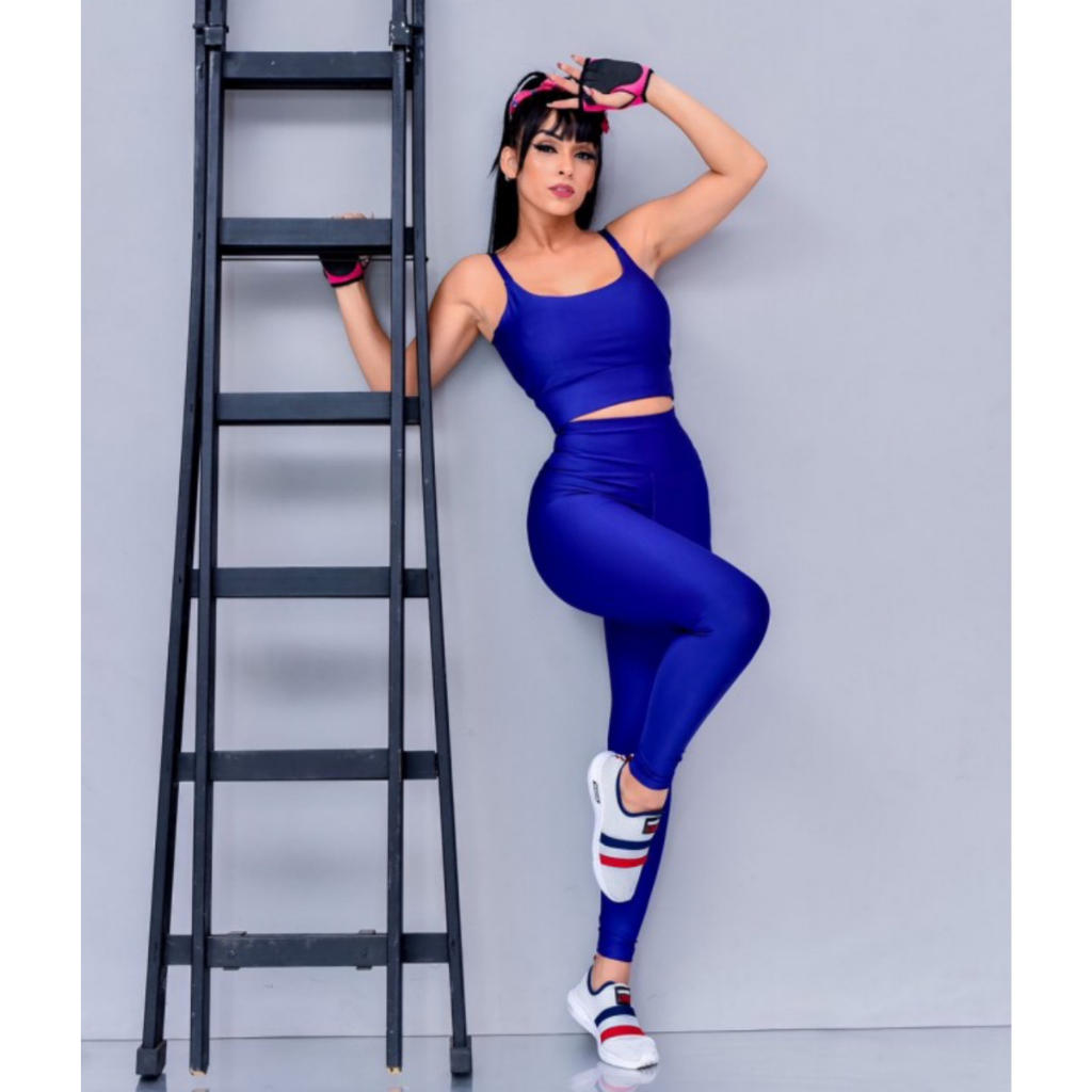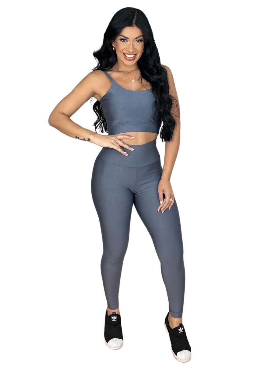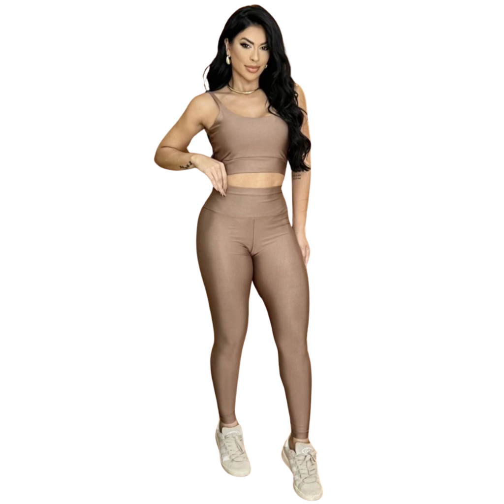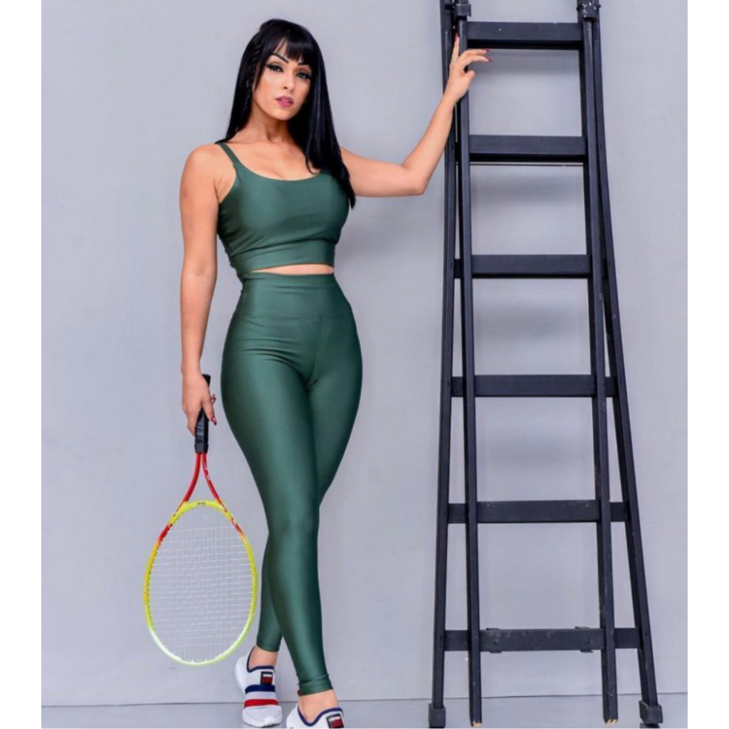 Conjunto Fitness Calça Legging Academia Cos Alto Top Com Bojo Removível Atividade Física