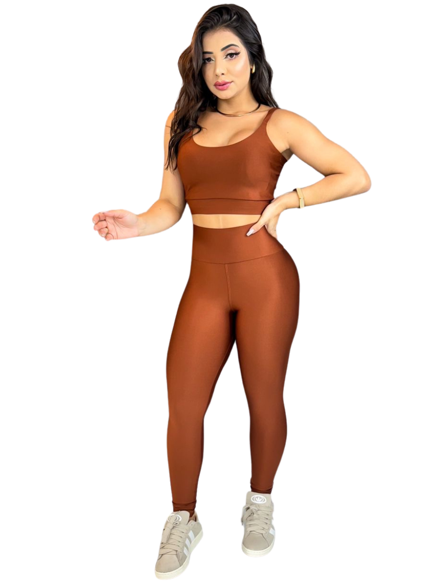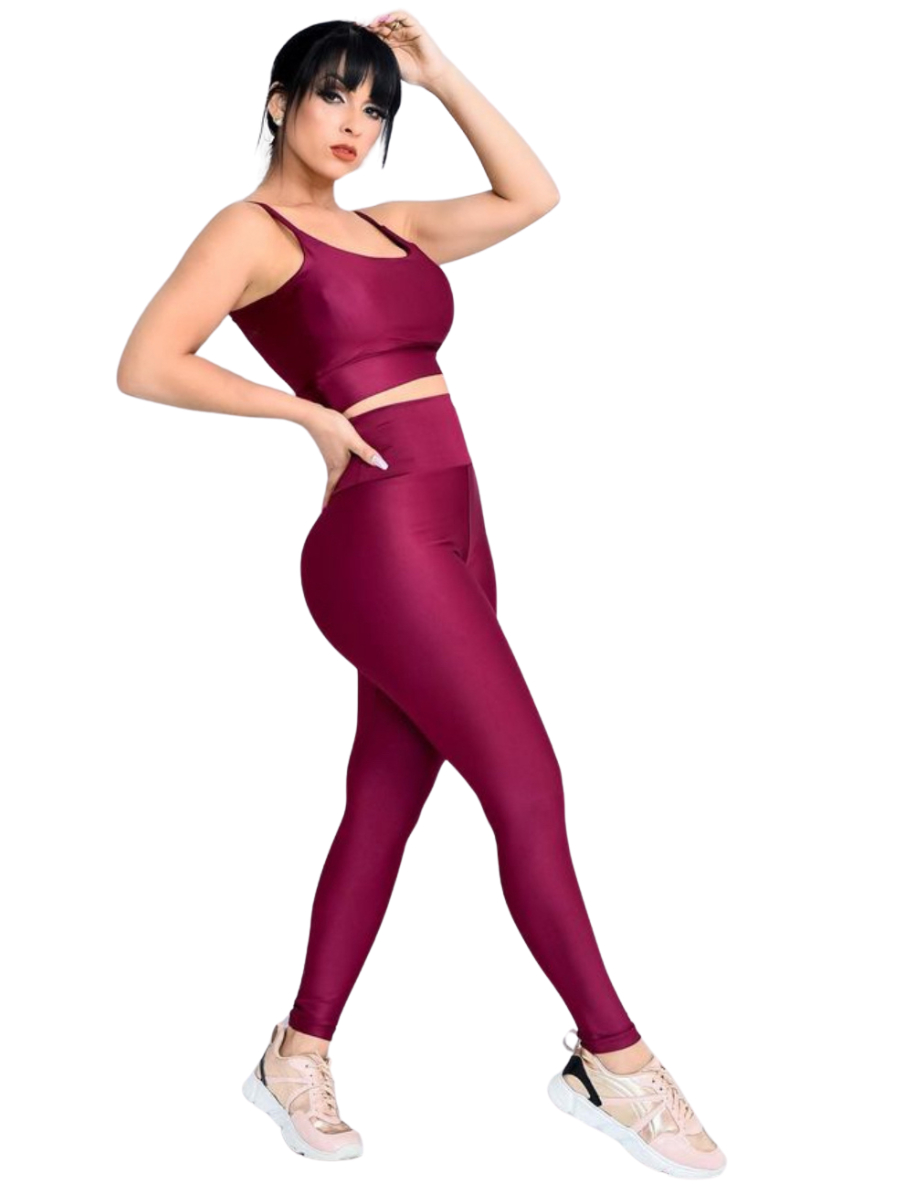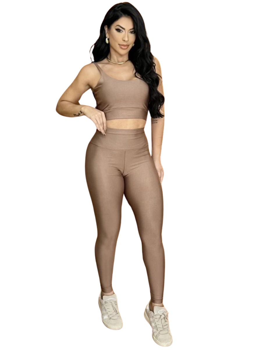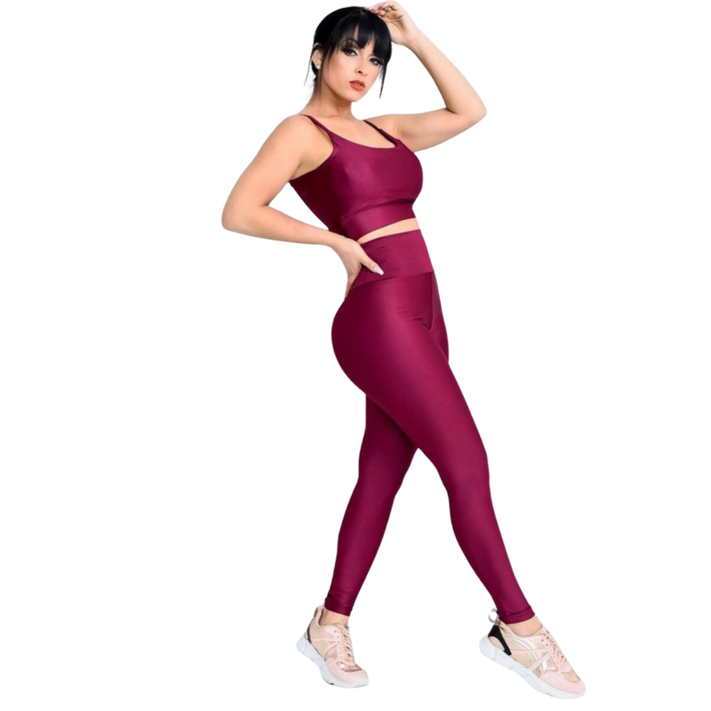 Conjunto Fitness Calça Legging Academia Cos Alto Top Com Bojo Removível Atividade Física