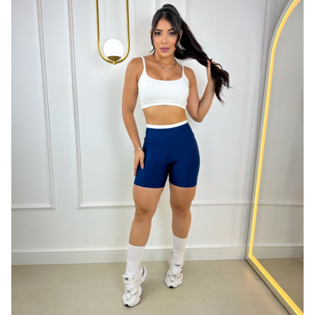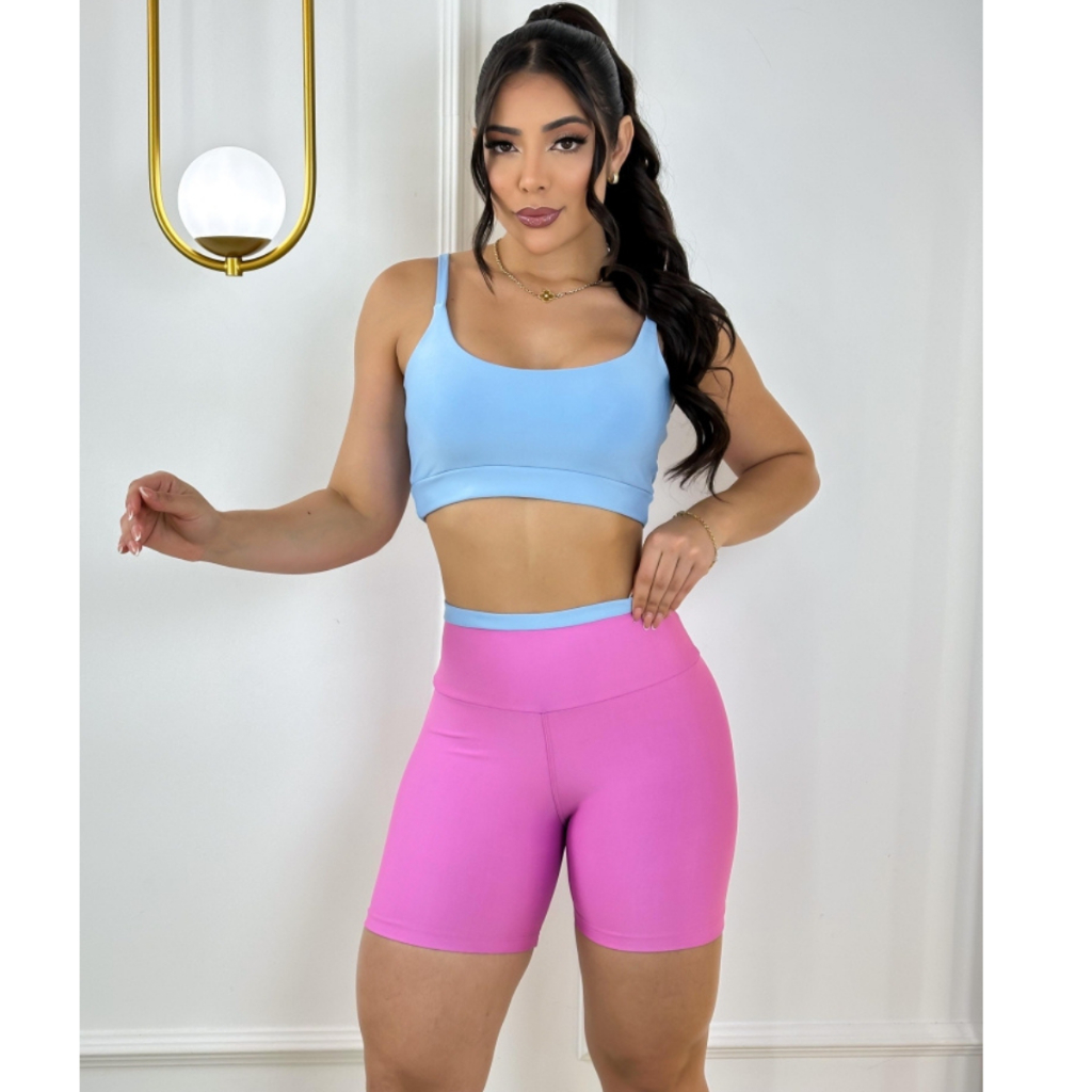 Conjunto Fitness Bicolor Feminino Short e Top Bojo Removível Academia Roupa De Malhar Suplex Premium