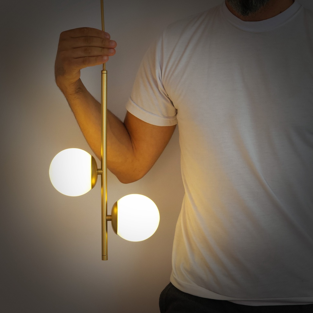 Kit 2 Pendentes Lustres Jabuticaba Globo de Vidro Dourado