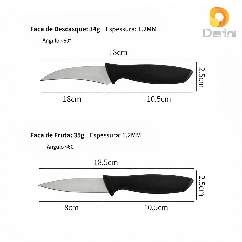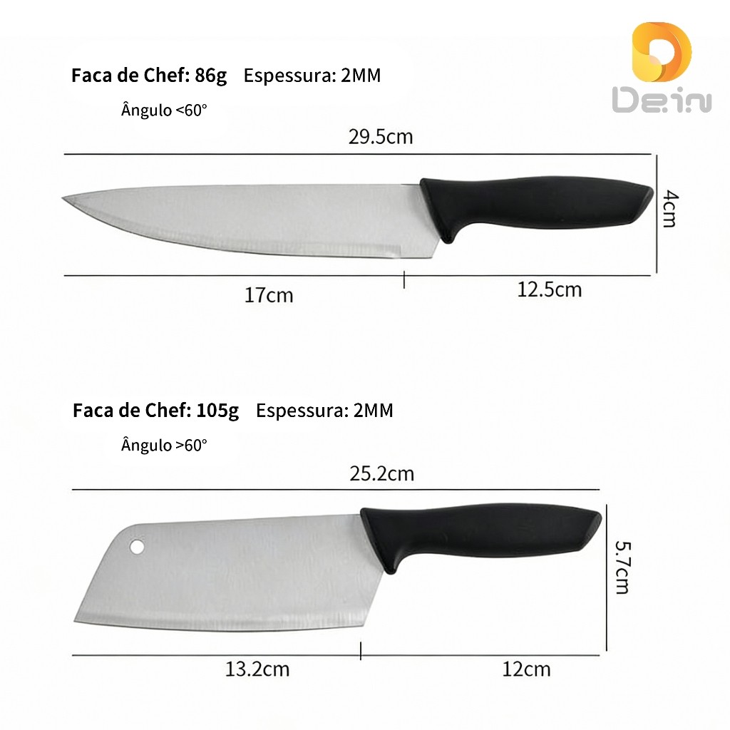 Kit Facas Cozinha 9 Peças Aço Inox Afiadas Uso Diário com Cabo Ergonômico