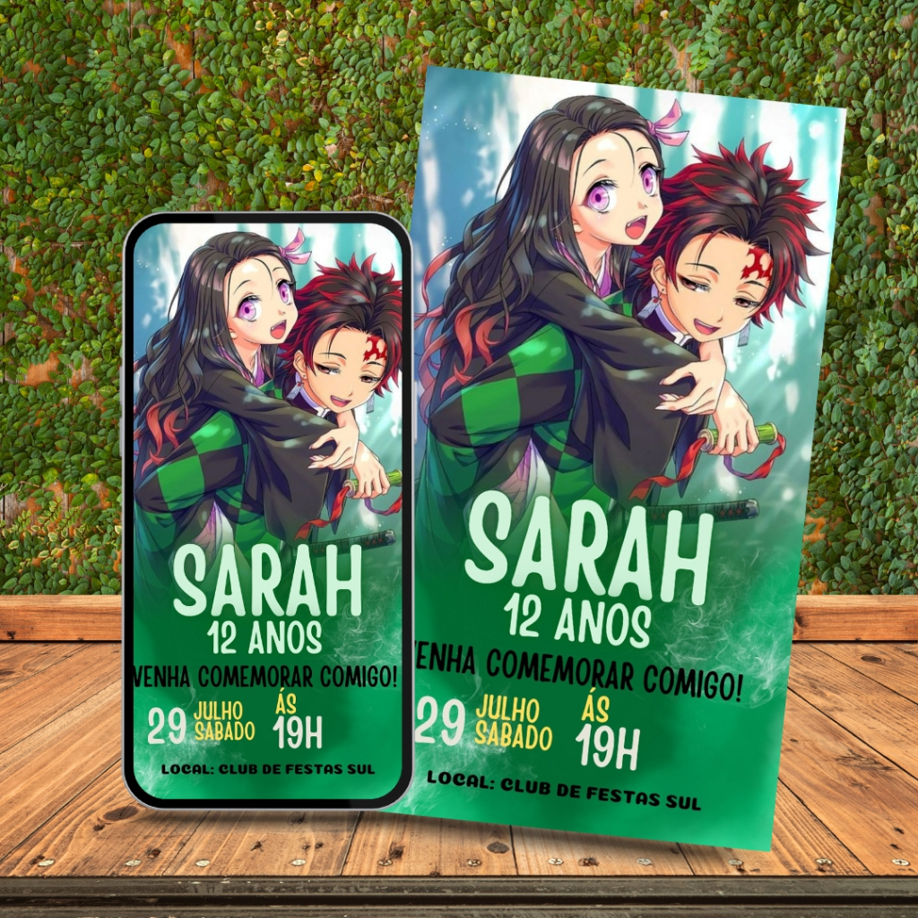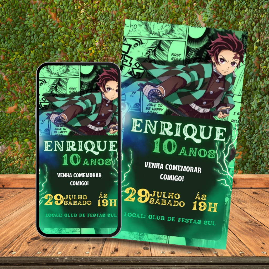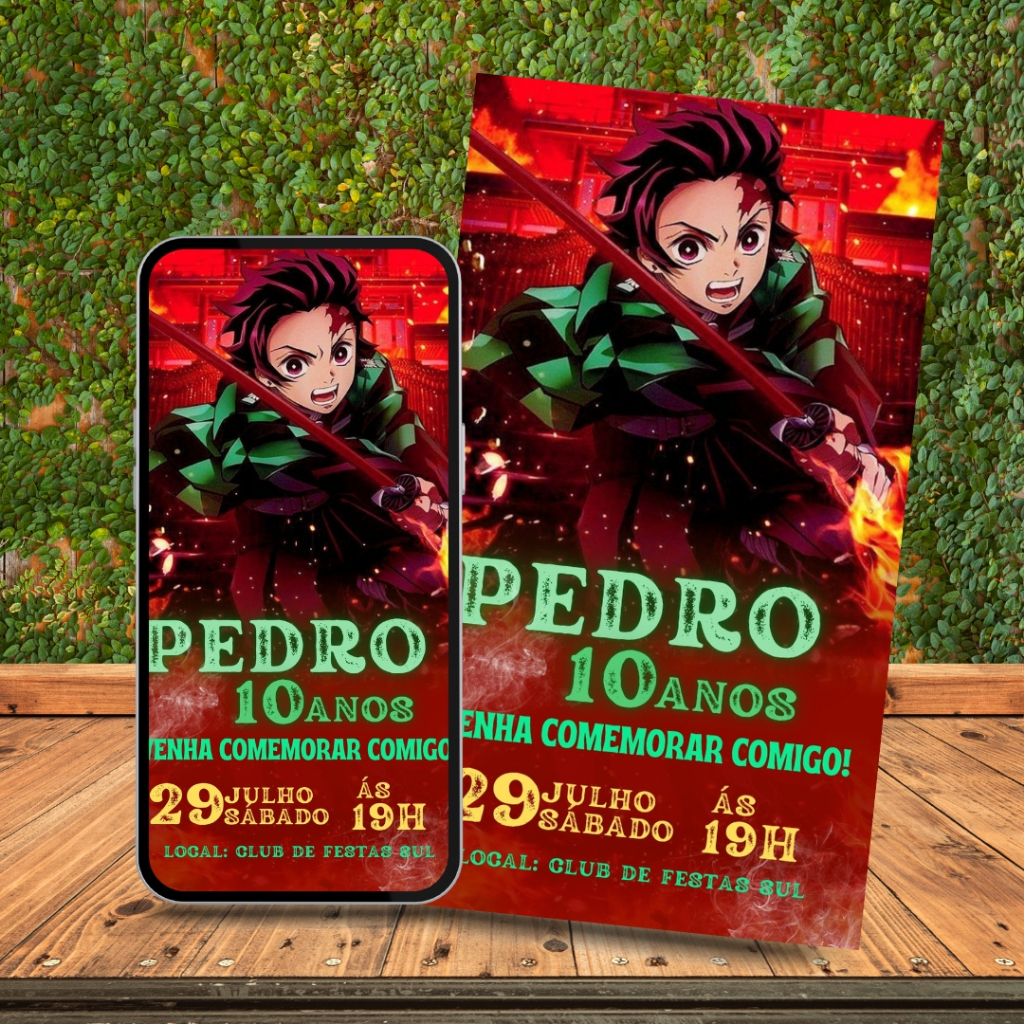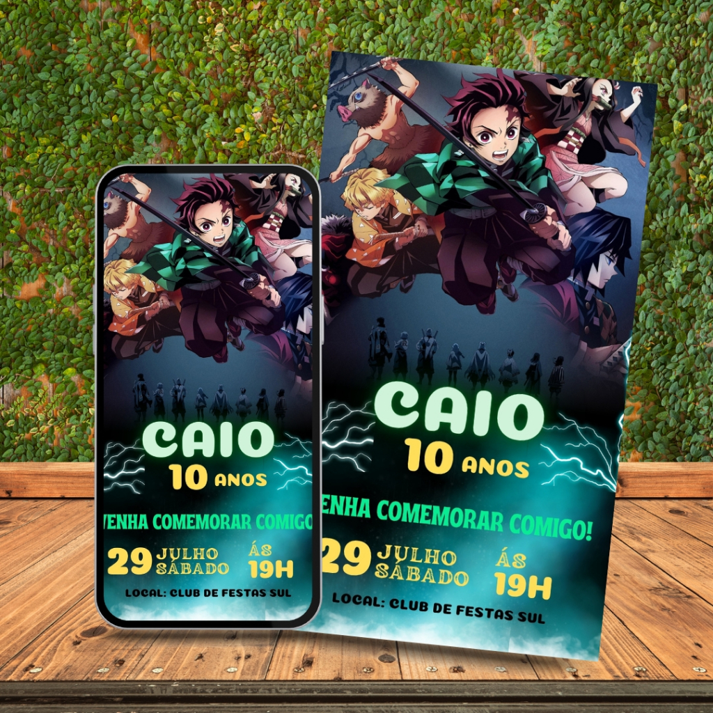 Convite De Aniversário Infantil Personalizado | Tema Demon Slayer + Outros Temas Disponíveis