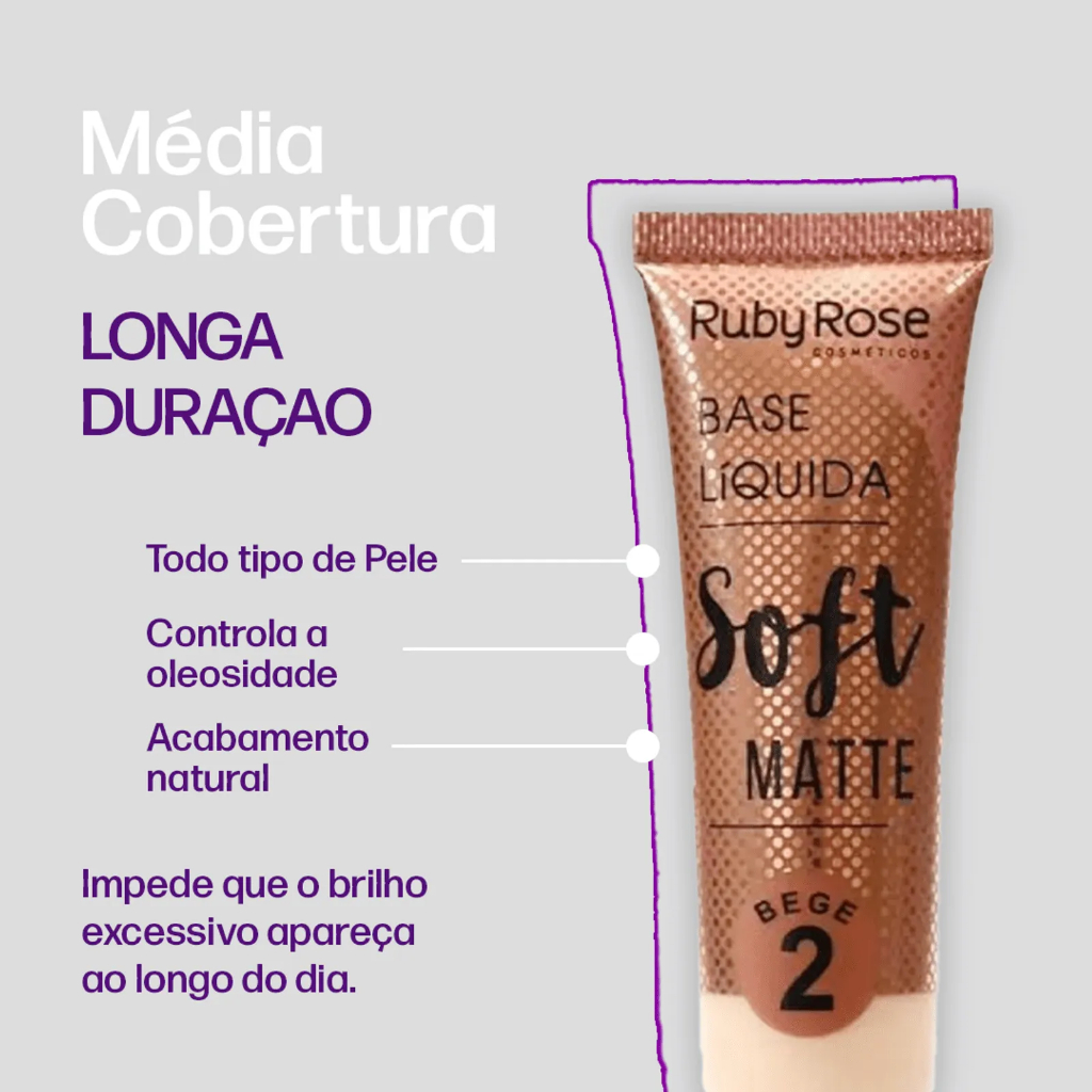 Base Líquida Soft Matte De Alta Cobertura e de Longa Duração - Ruby Rose