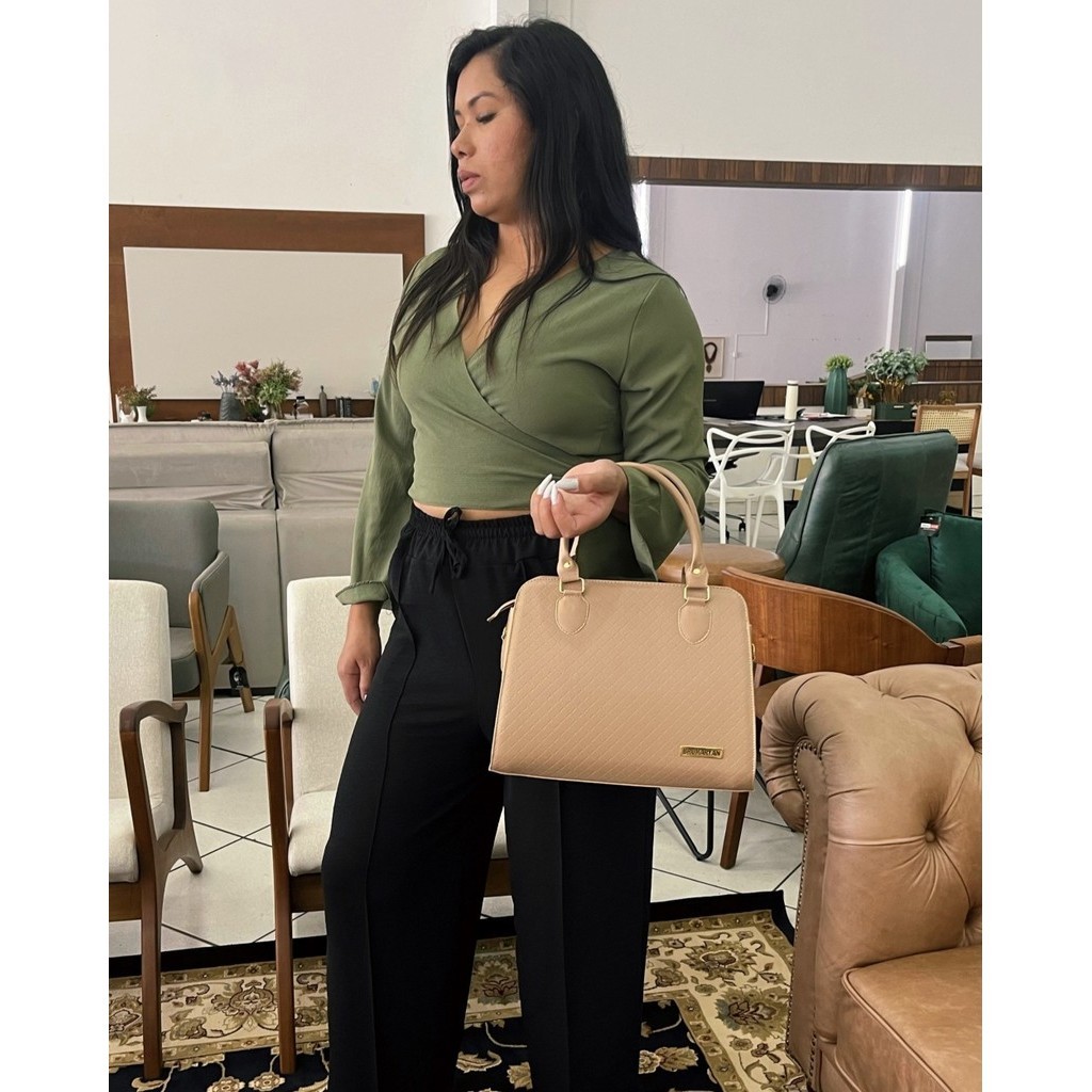 Bolsa Baú Grande Feminina Elegante de Mão e Alça Transversal