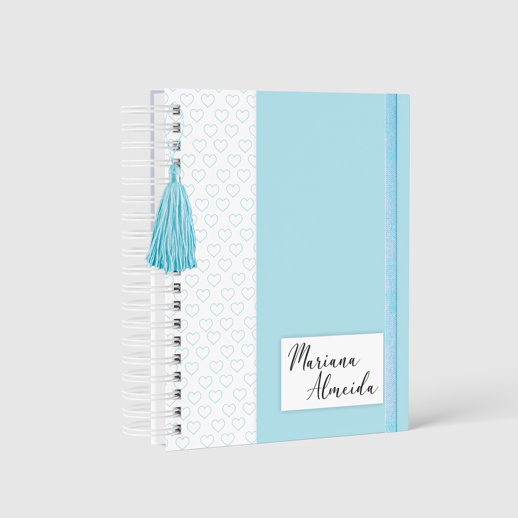 Agenda 2026 Personalizada Azul Claro Corações com Nome
