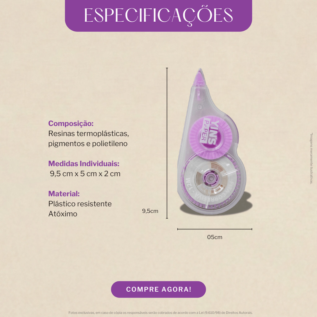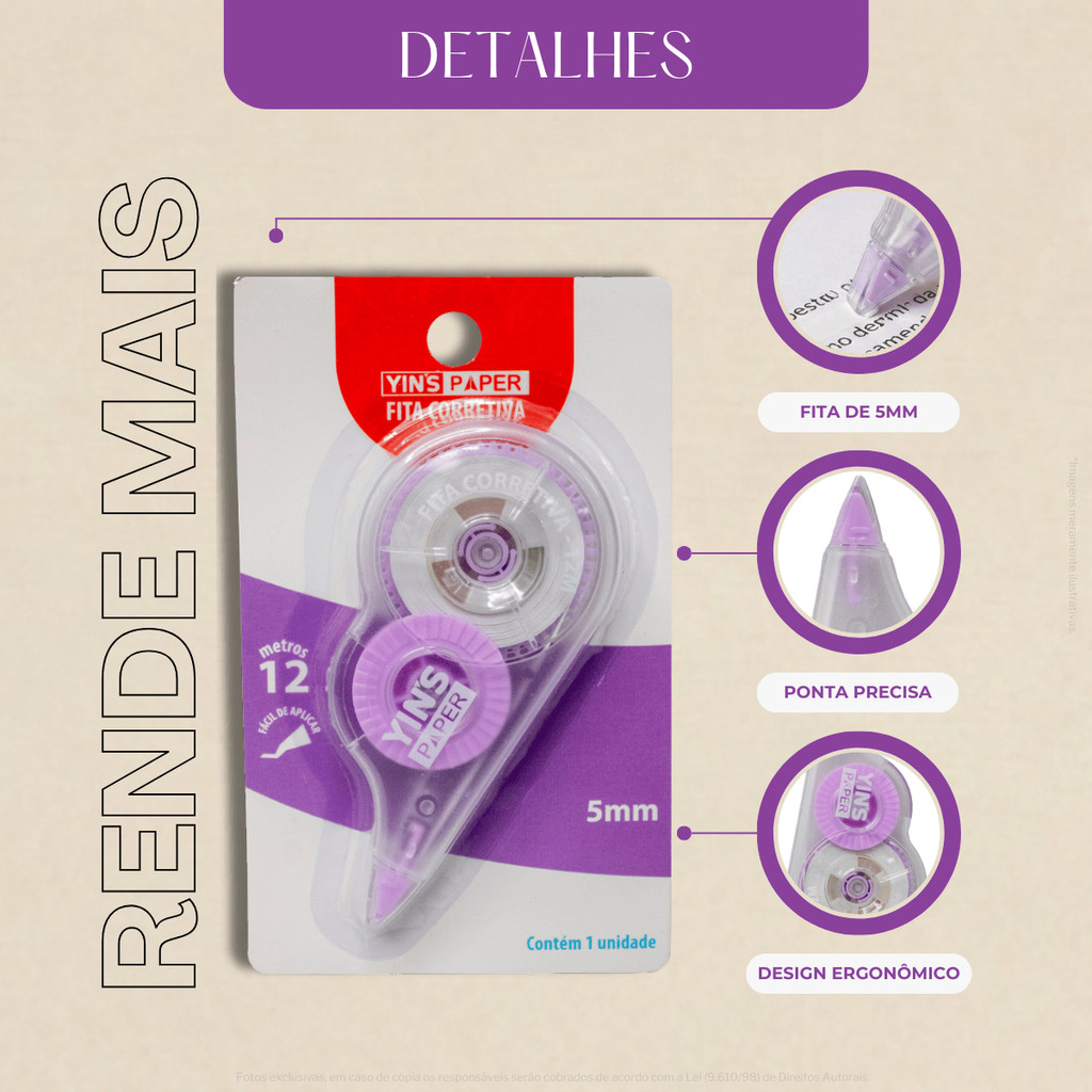 Fita Corretiva 5mm Yins paper 12m Saída De Grande Capacidade Para Escola E Escritório