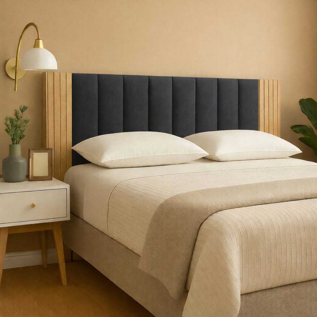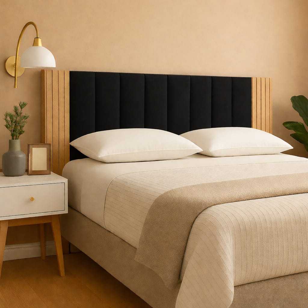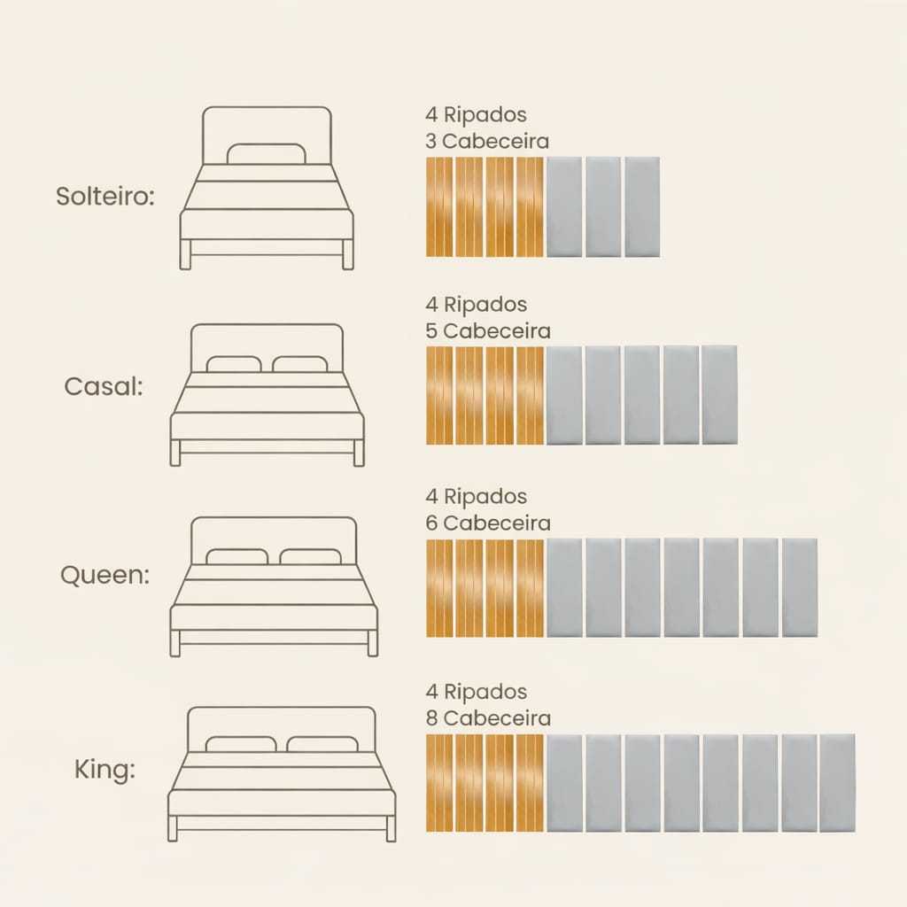 Kit Com Até 12 Peças Cabeceira Estofada Adesiva+Painel Ripado MDF Cama Box Solteiro Casal Queen King
