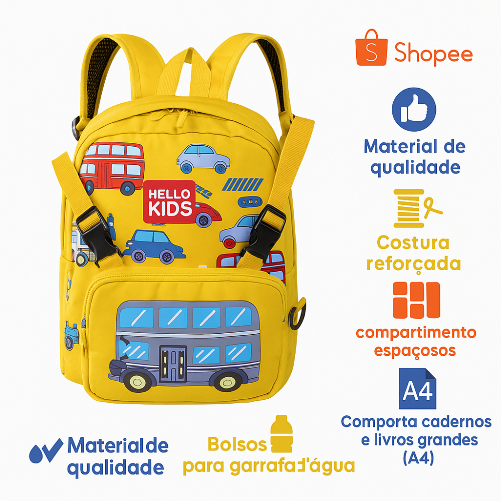 Mochila Infantil Unissex Para Creche e Pré-escola 🦄 | Com Estojo Acoplado e Alças Acolchoadas | 2 a 5 Anos
