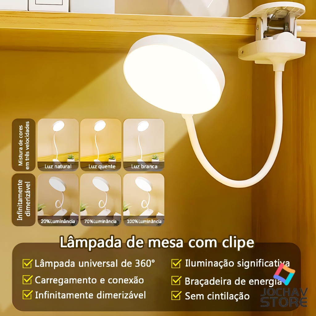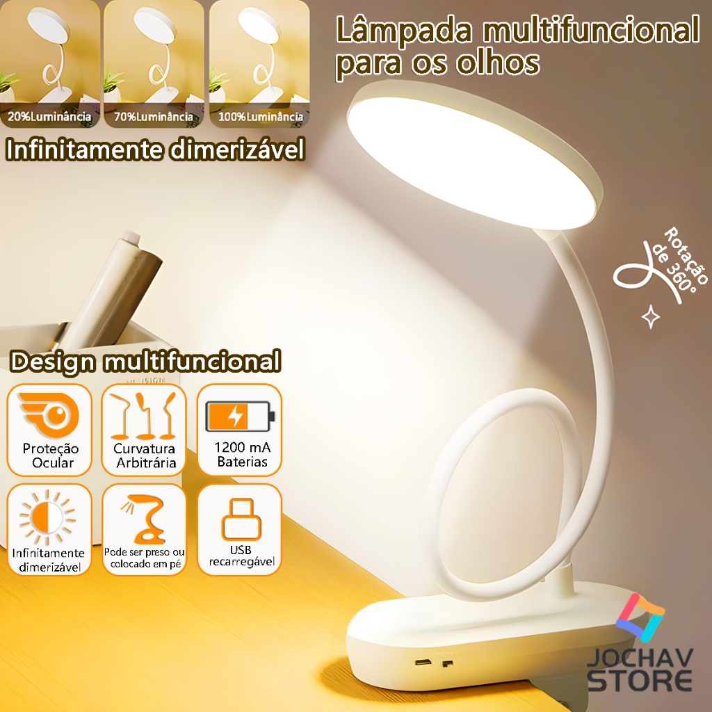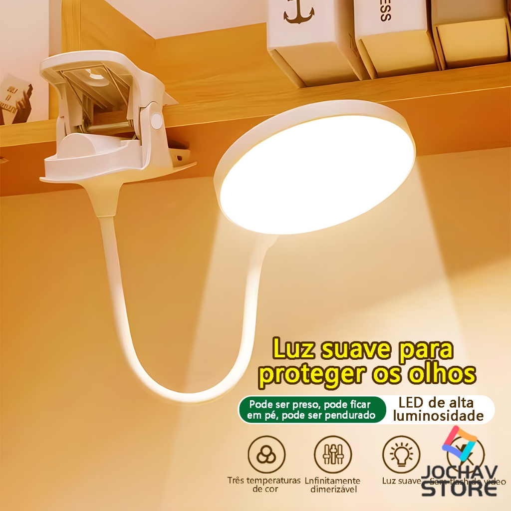 Luminária De Mesa Recarregável Com Três Opções De Temperatura De Cor USB Sem FIo Dobrável Portátil