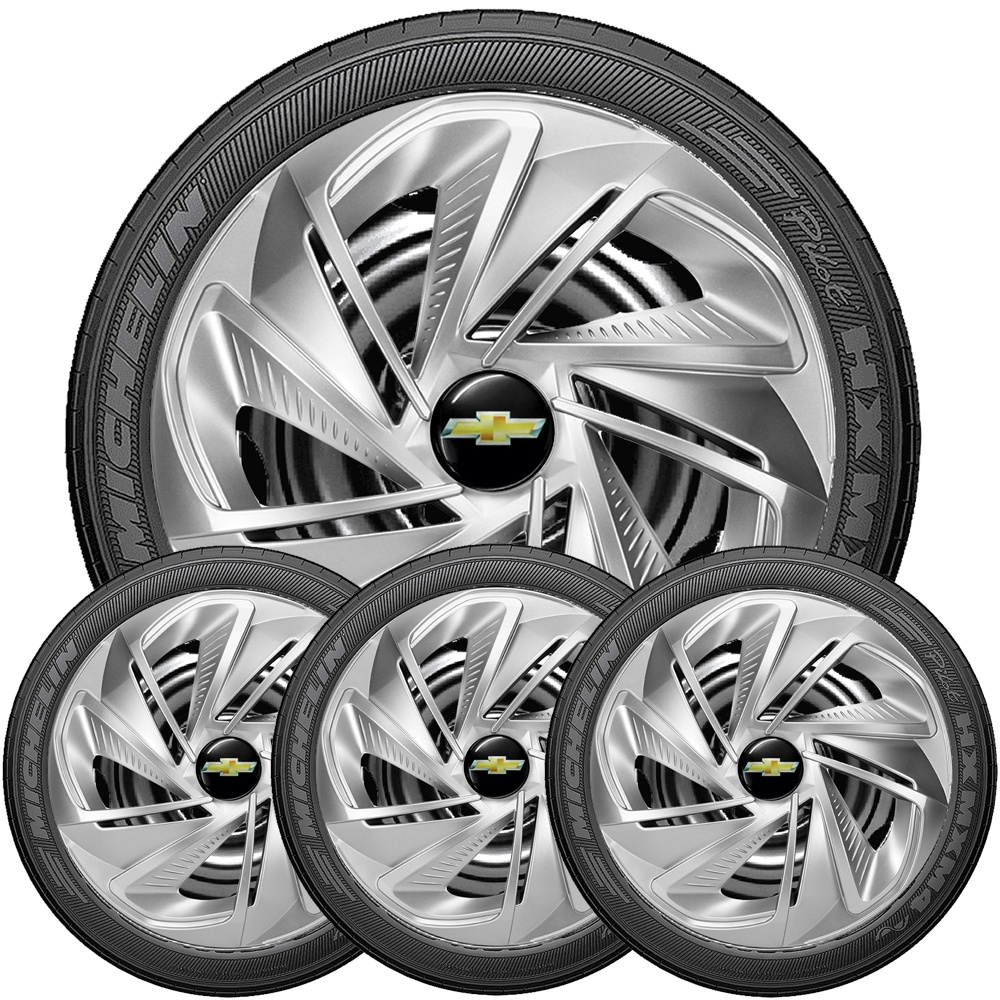 Kit 4 Calotas Resistentes Esportivas Aro 13 Linha Nitro Prata Compativel Com Celta Classic Montana
