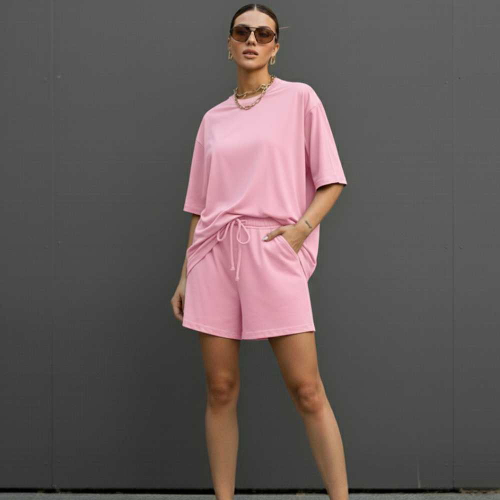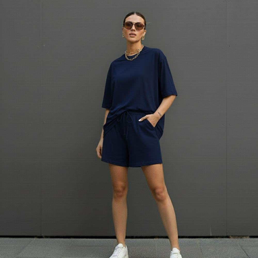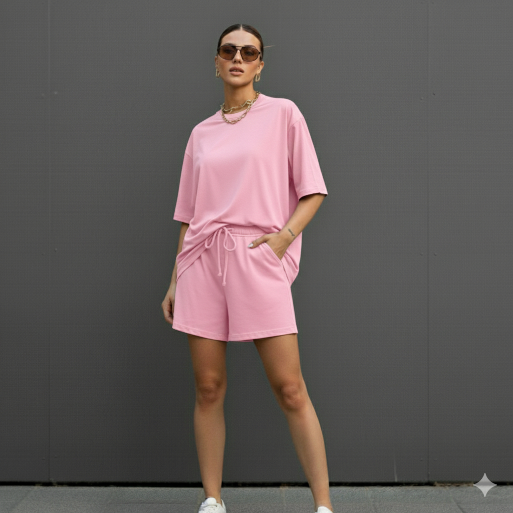 Conjunto Short e Blusa Over Estiloso Alfaiataria com Detalhes em Cordão