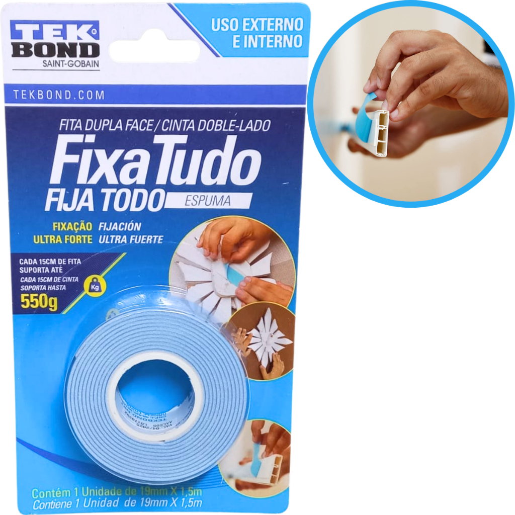 Fita Espuma Dupla Face Fixa Tudo 19mm x 1,5m 550g TekBond