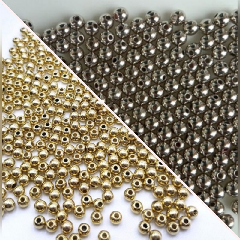 Bola Lisa Prata / Dourada com Furo 3MM / 4MM / 5MM - 10 Gramas