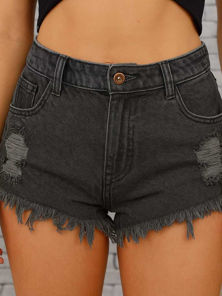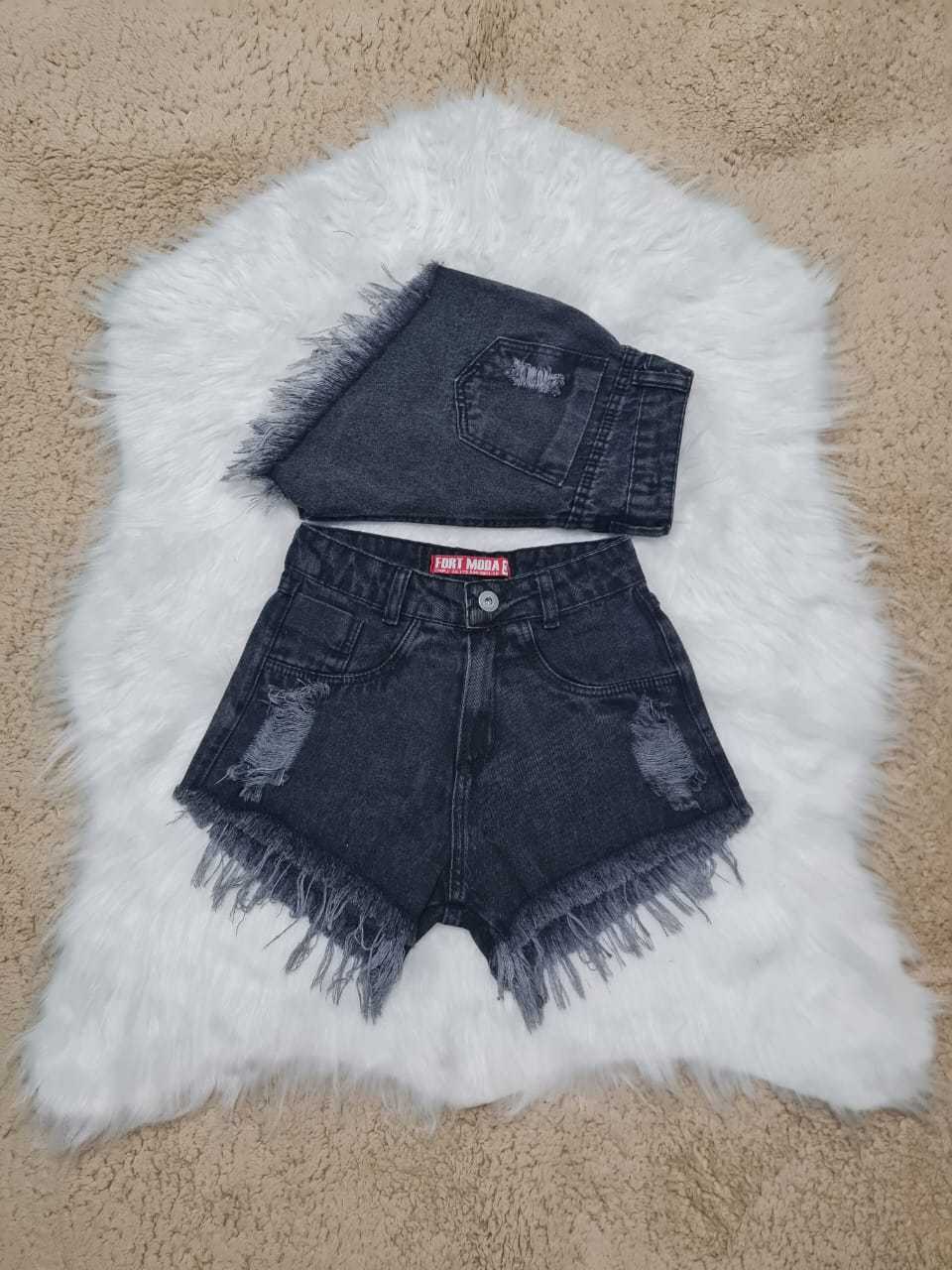 Shorts Jeans Feminino Destroyd Empina Bumbum Marmorizado Black Lora
