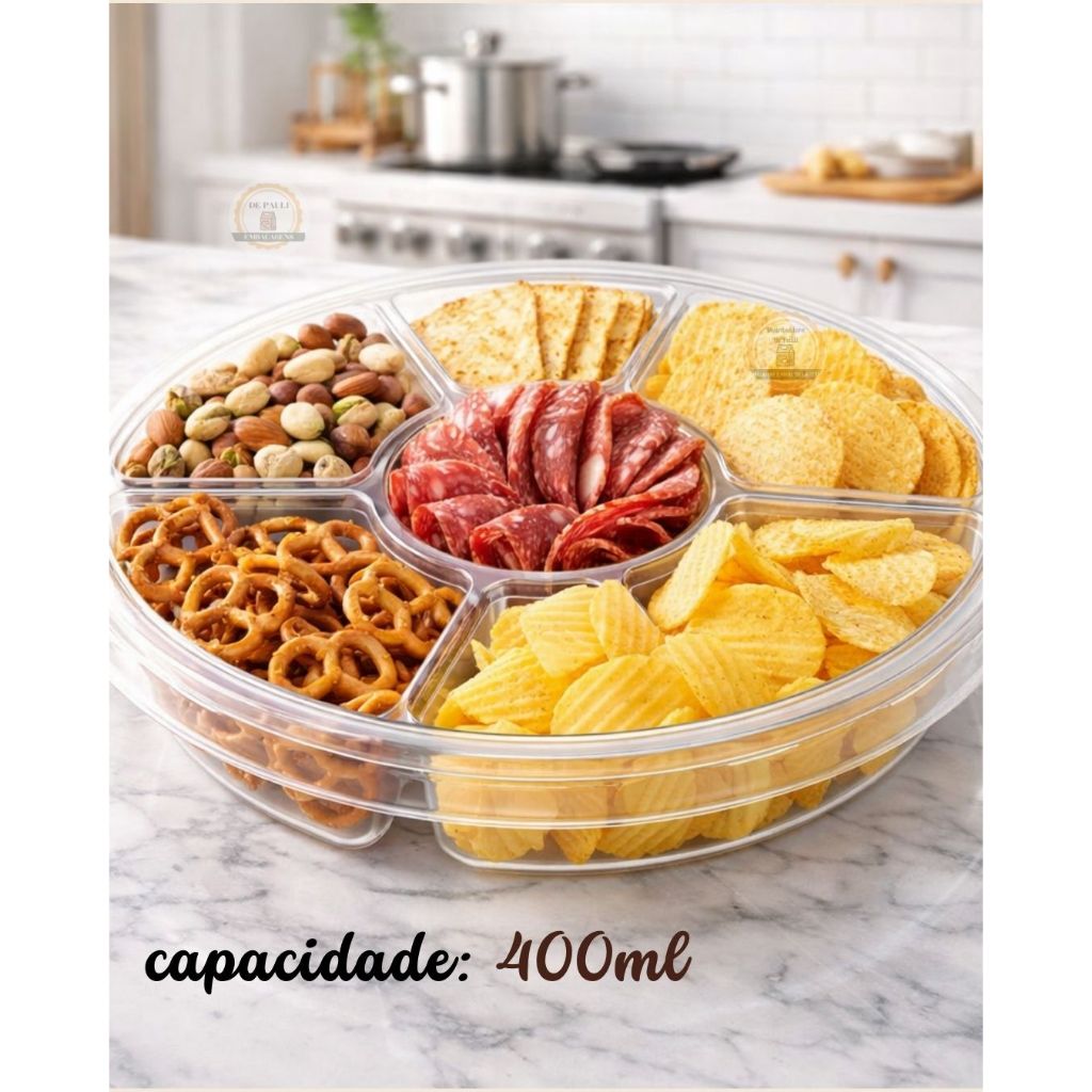 Petisqueira Descartável com tampa e 4 divisórias G540 / 500 ml (10 unidades)