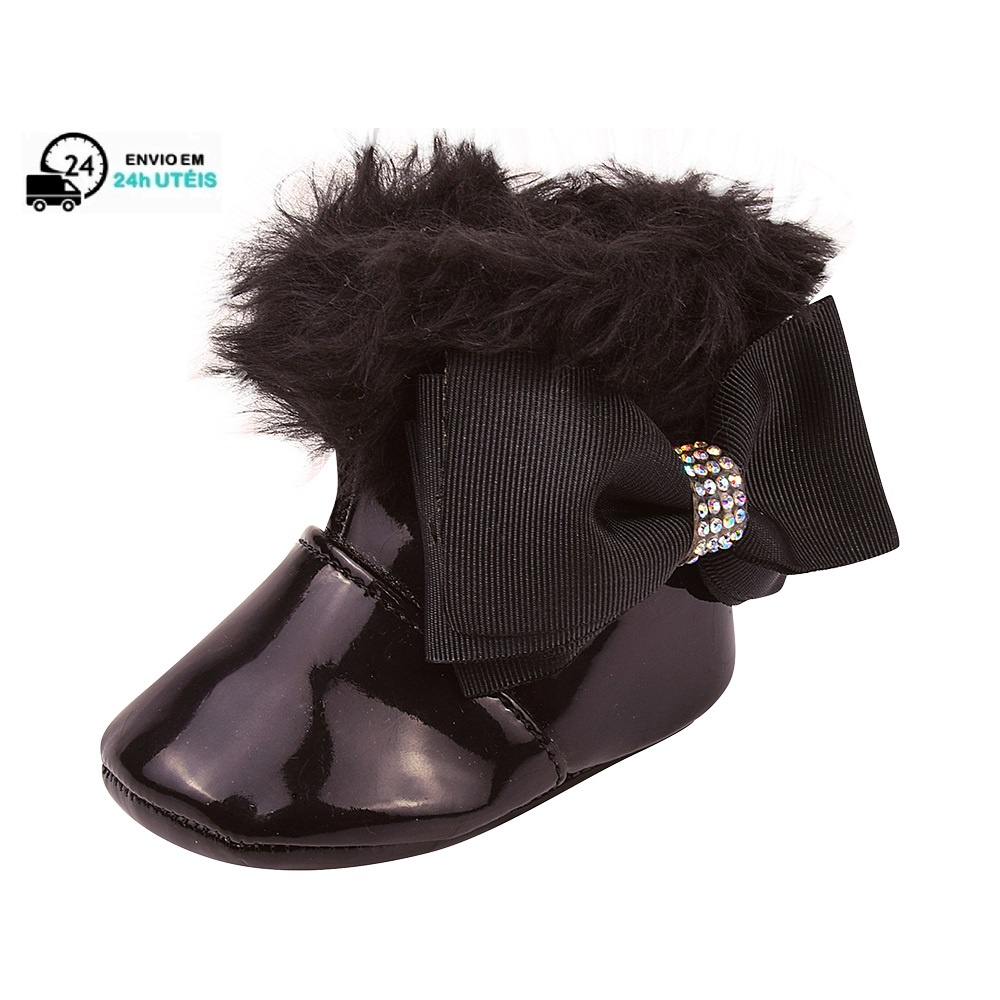 Bota Bebe Mania Preta Laço Inverno Fofa 102-04