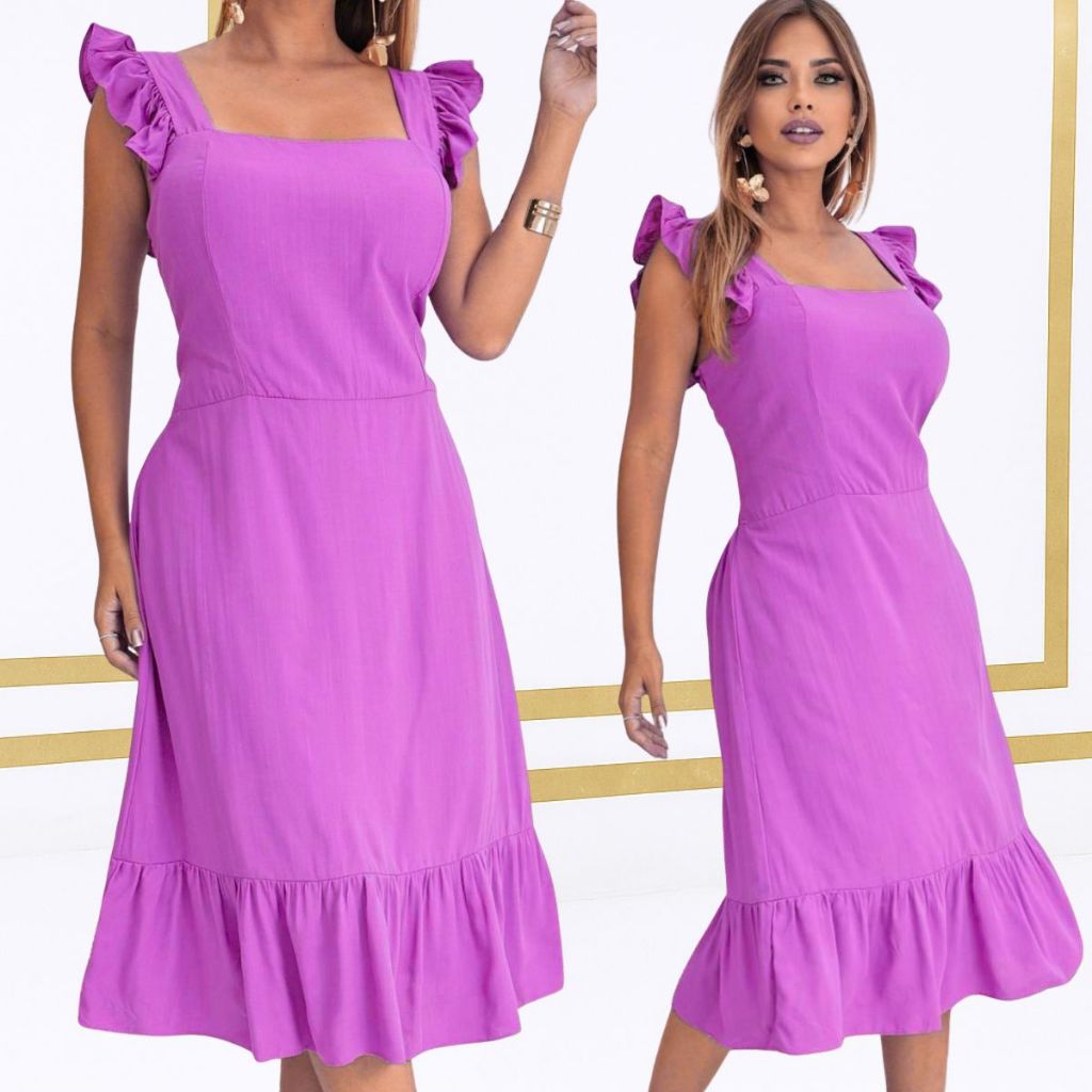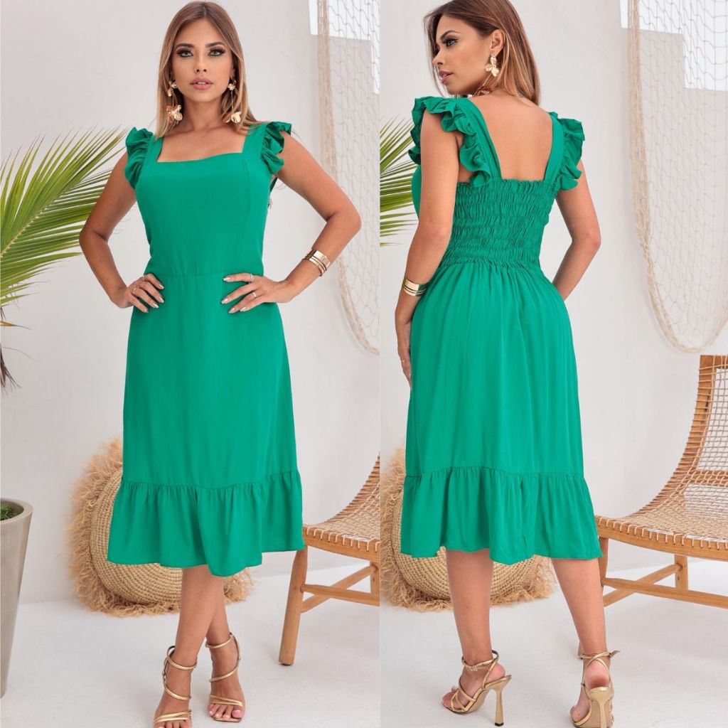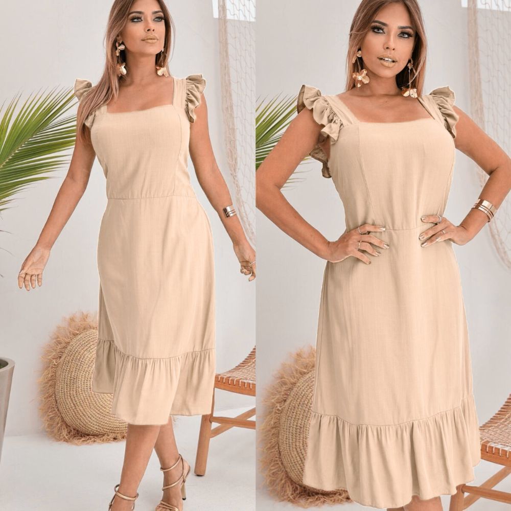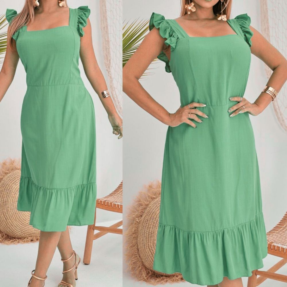 Vestido midi feminino casual elegante forrado tecido viscolinho