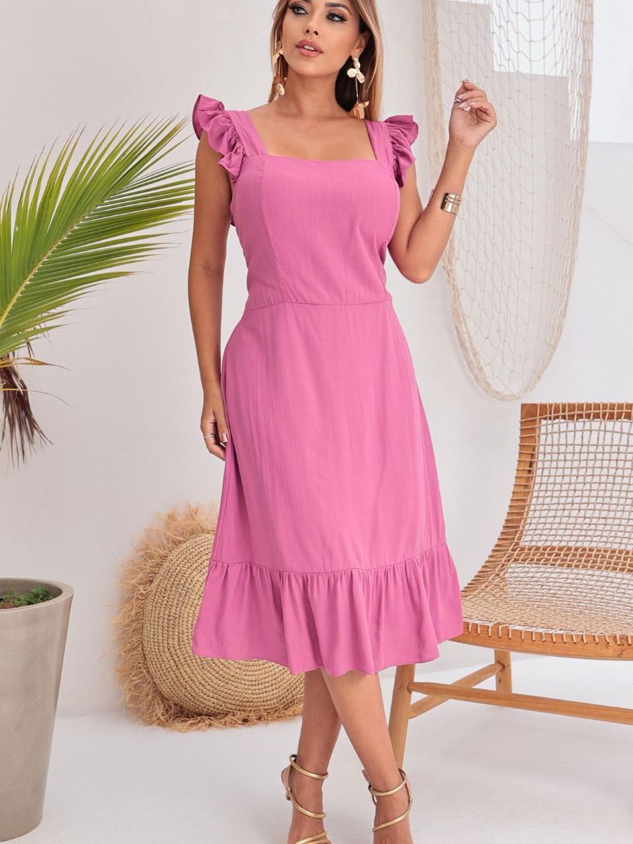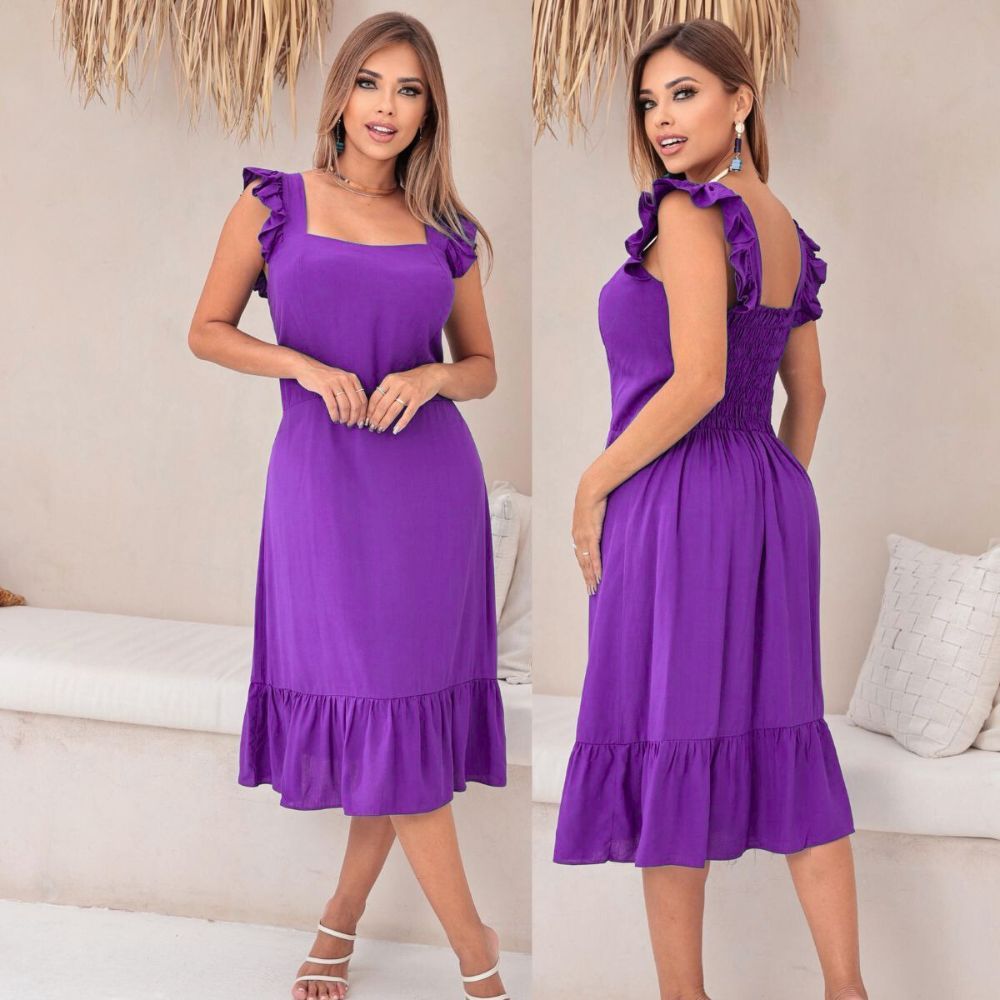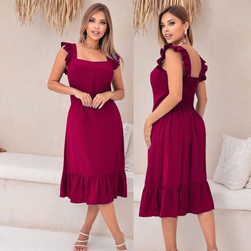 Vestido midi feminino casual elegante forrado tecido viscolinho