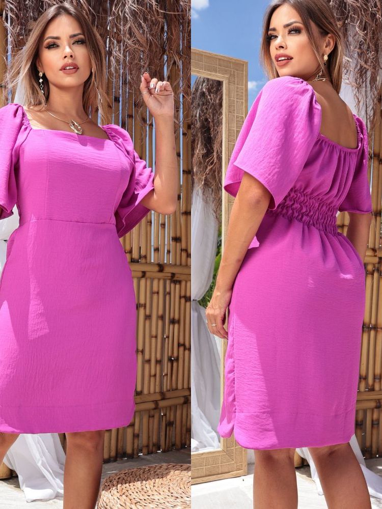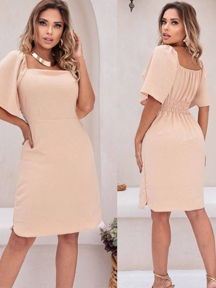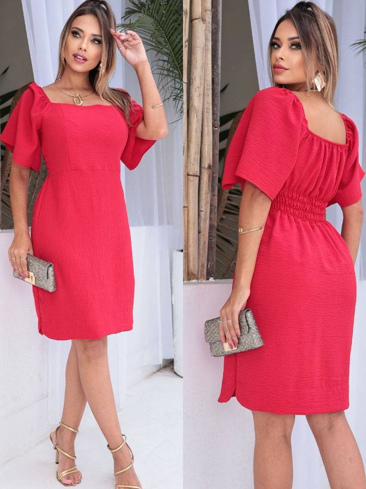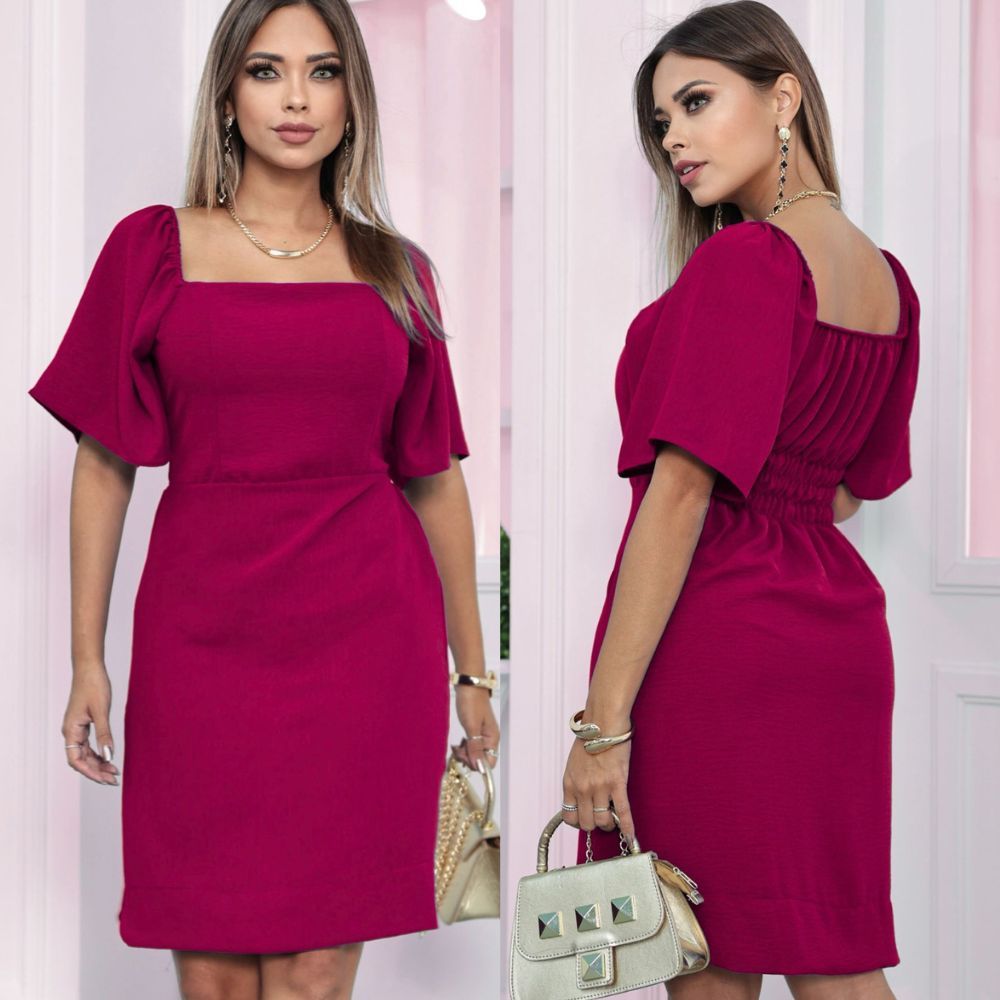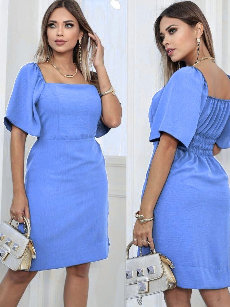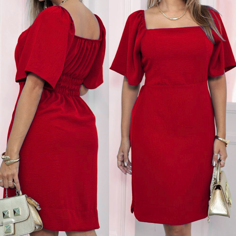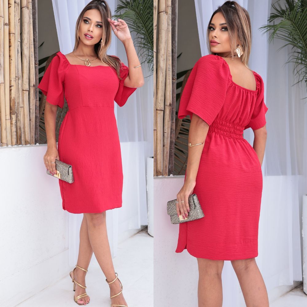Vestido Curto Feminino Eelegante Tecido Duna Forrado Manga Flare Curta