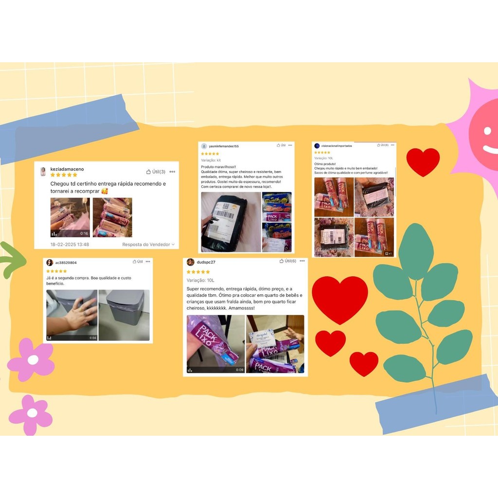 Saco de Lixo Cheiroso Lavanda p/ Banheiro e Pia Saco de Lixo Perfumado 10L Kit 10 Pacotes 400 Unid