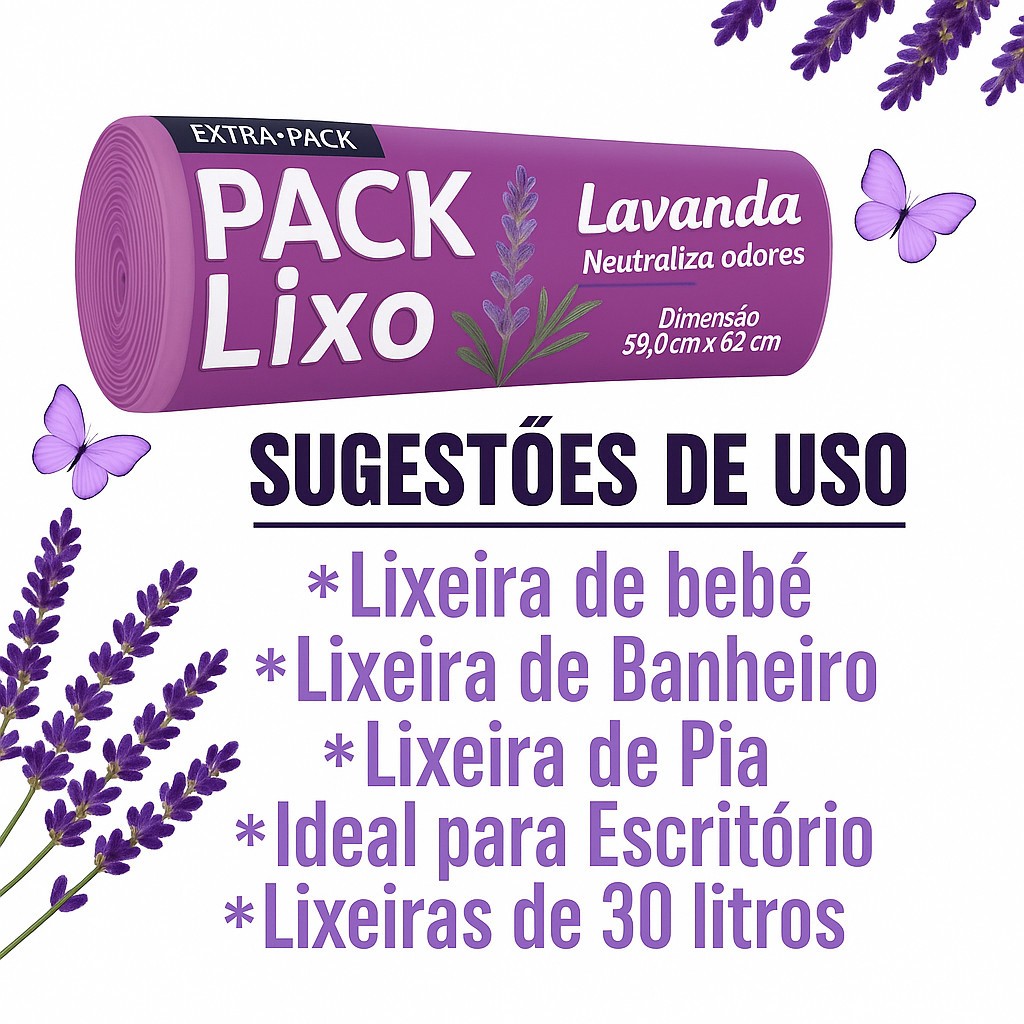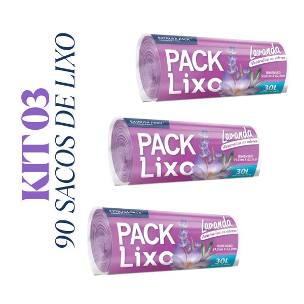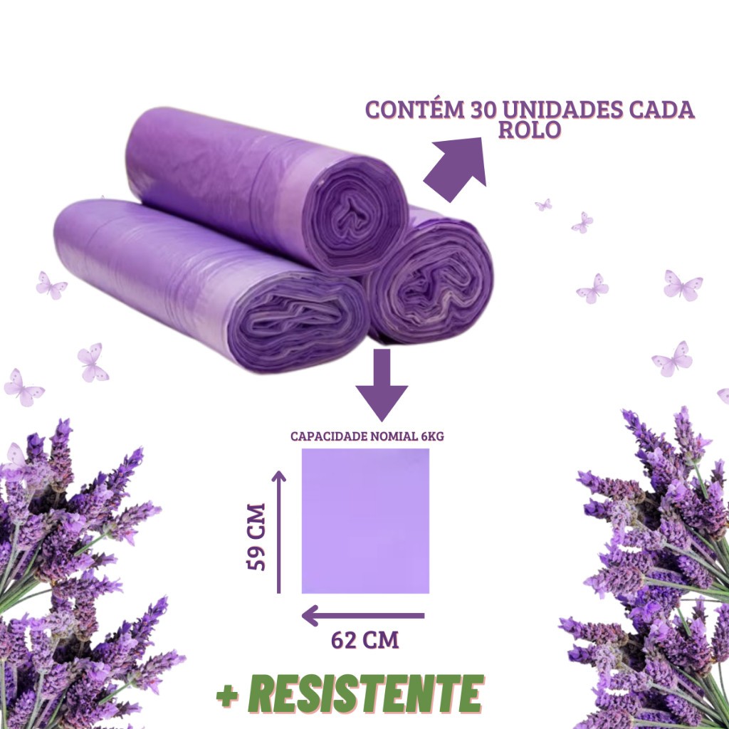 Saco de Lixo Perfumado 30 Litros Lavanda Kit 1/2/3 Neutraliza Odores Econômico Resistente Cheiroso