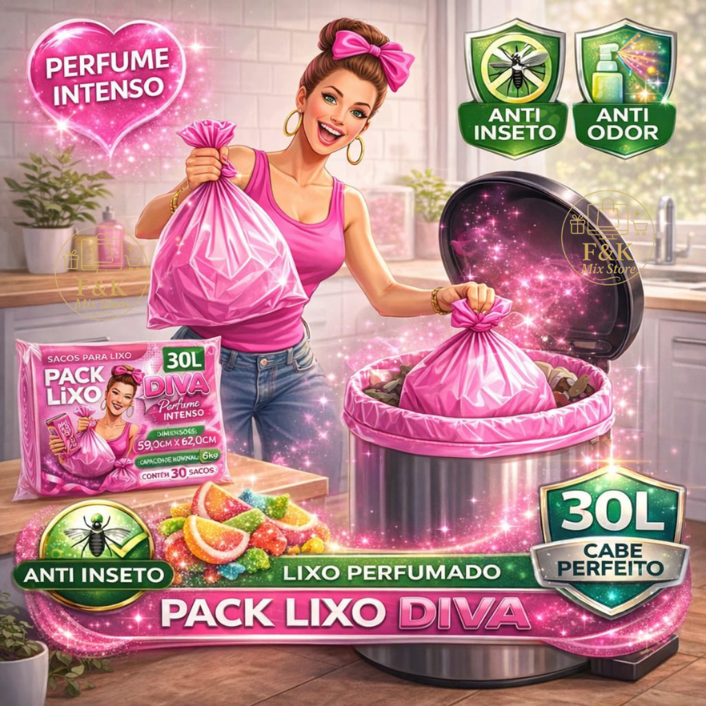 Saco de Lixo Cheiroso Rosa Tutti Frutti 15L Perfumado Perfume Intenso Neutraliza Odores Sofisticado