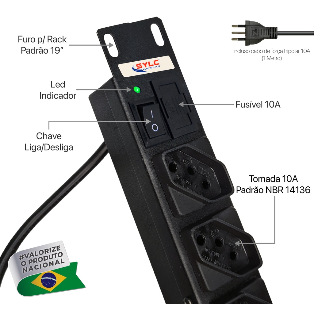 Régua Protetora Filtro De Linha 19 1u" rack 12 TOMADAS