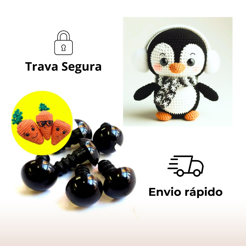 Olhinhos de Amigurumi Olhos de Segurança kit com Trava 7mm 9mm 11mm 13mm 15mm 18mm Boneca Crochê Kit