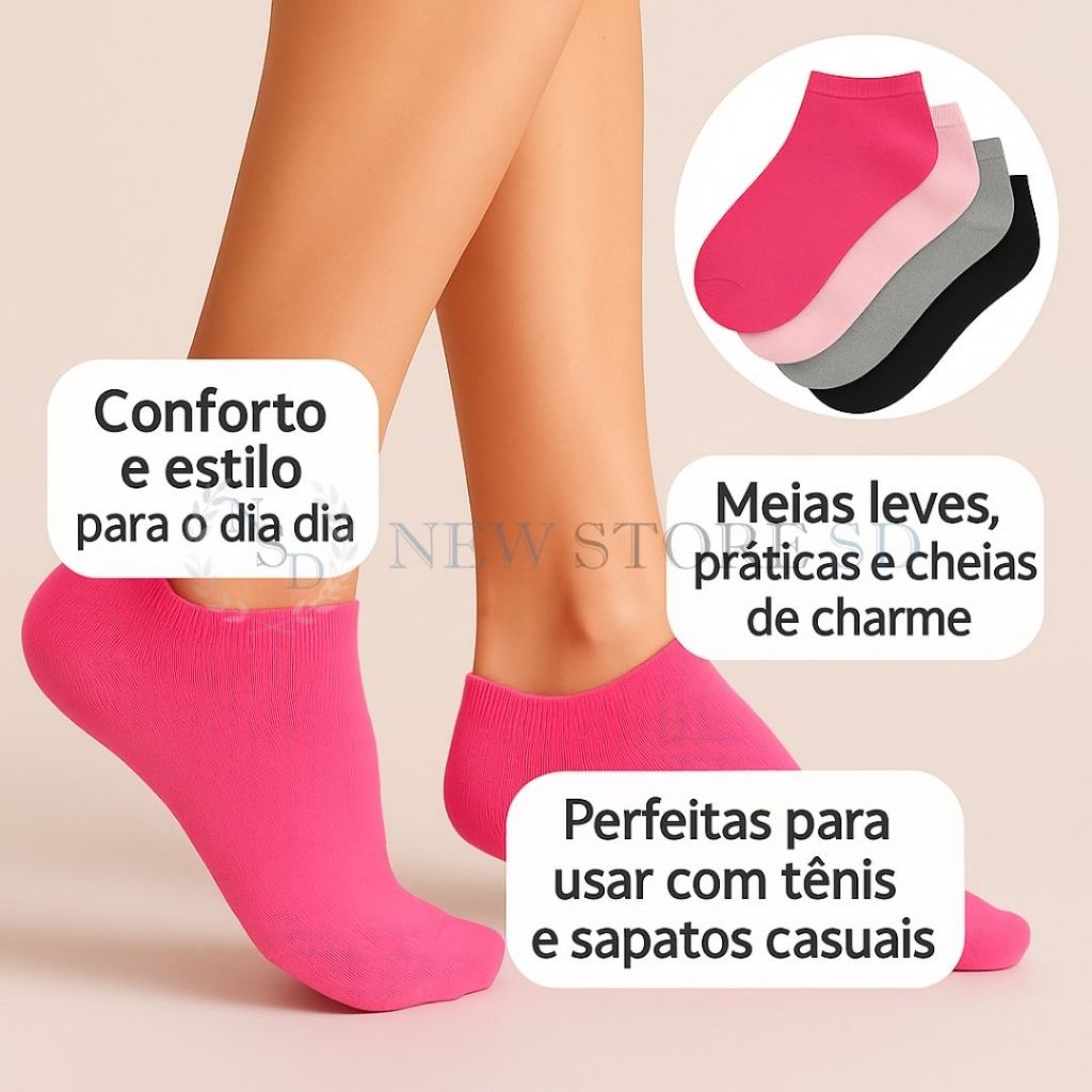 Kit até 18 Pares Meia Feminina Soquete Lisa Cano Curto Premium Veste 35 ao 40