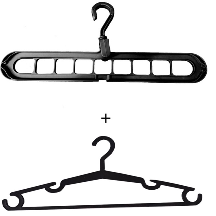 Kit 1 Cabide Mágico Organizador e 9 Cabides Pretos