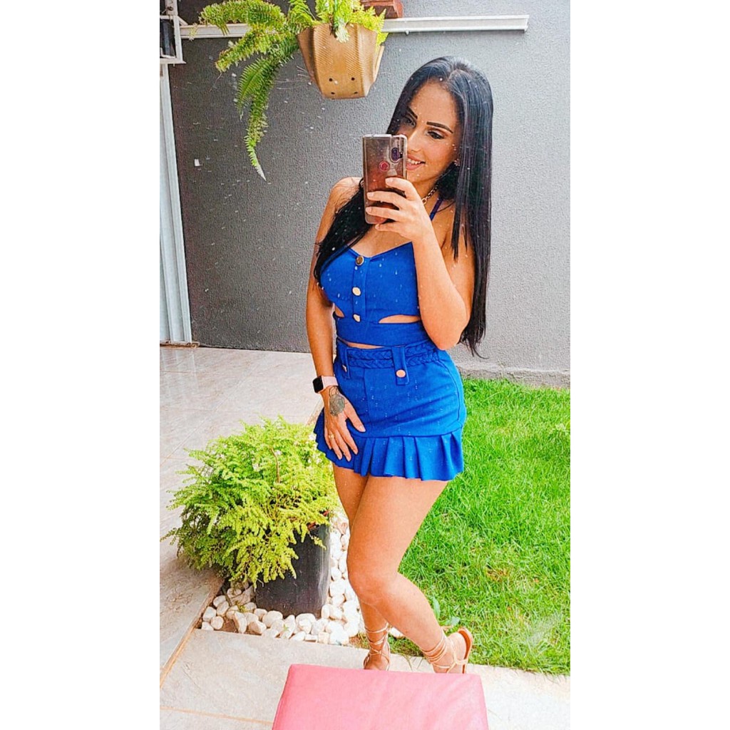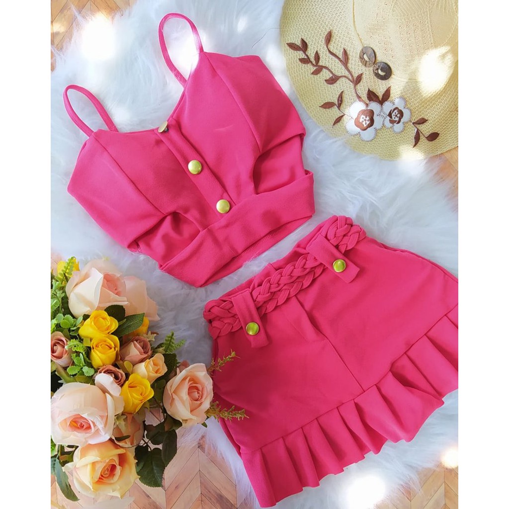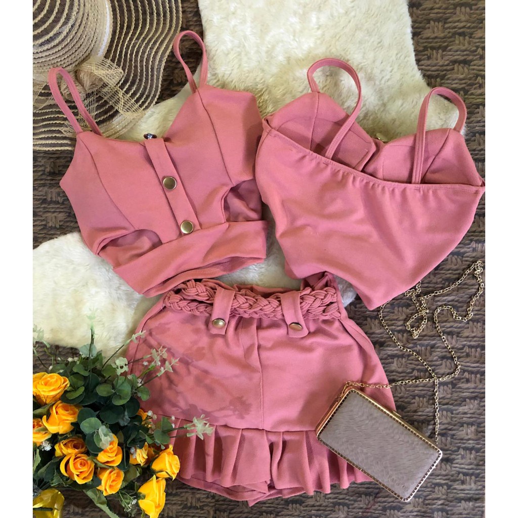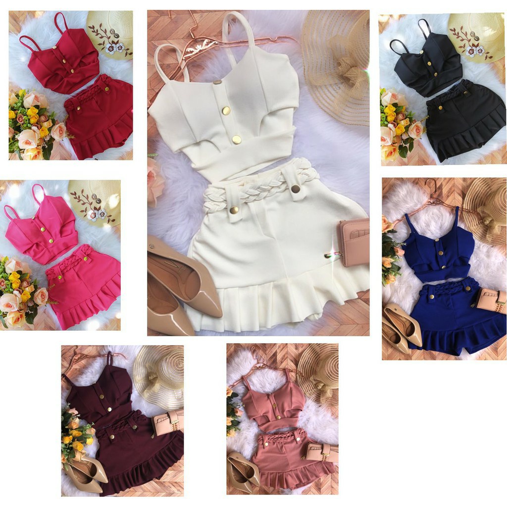 Conjunto Cheio de estilo Short Saia Cós Alto Top Com Bojo C02
