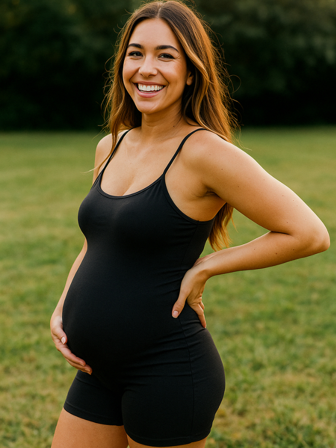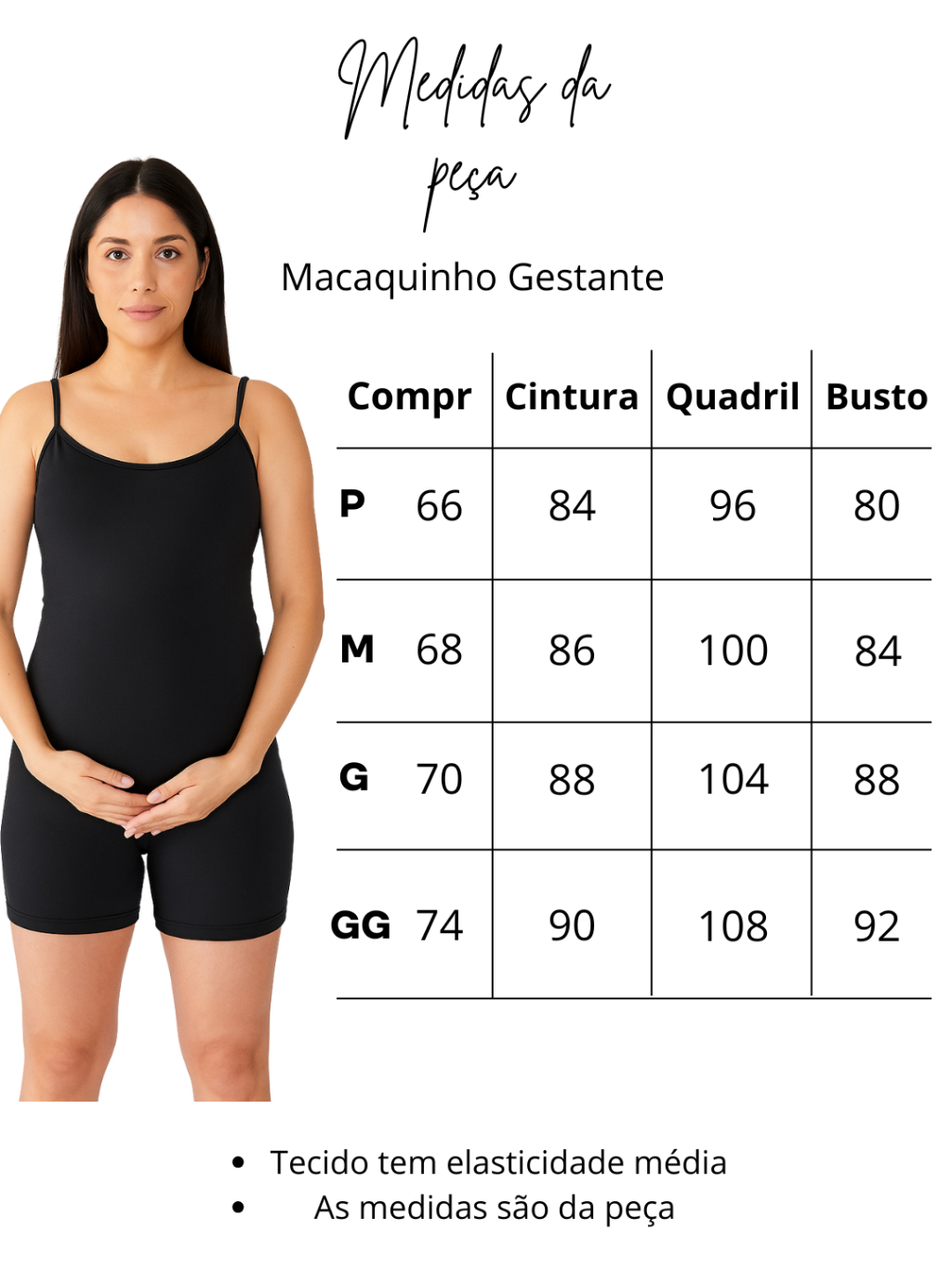 Macaquinho Gestante Sustenta Barriga Fitness Suplex Preto P ao GG