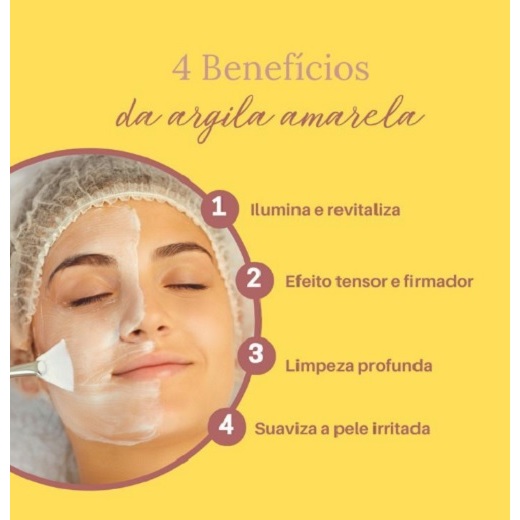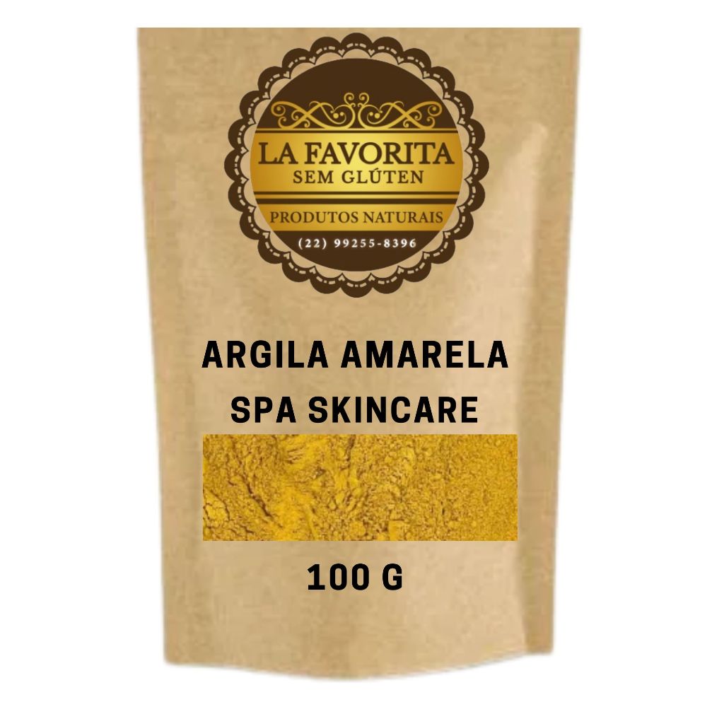 Argila Amarela em pó para máscara facial e couro cabeludo e corpo - 100 G - 200 G - 500 G - La Favorita Sem Glúten