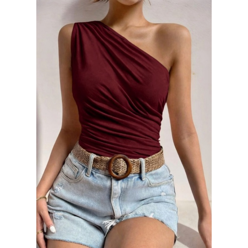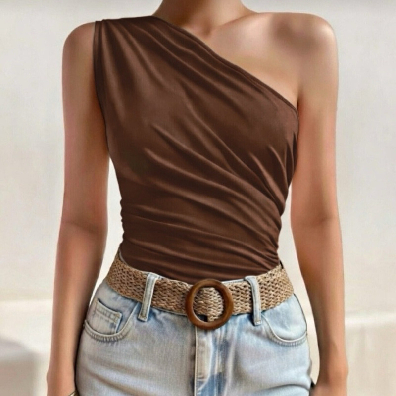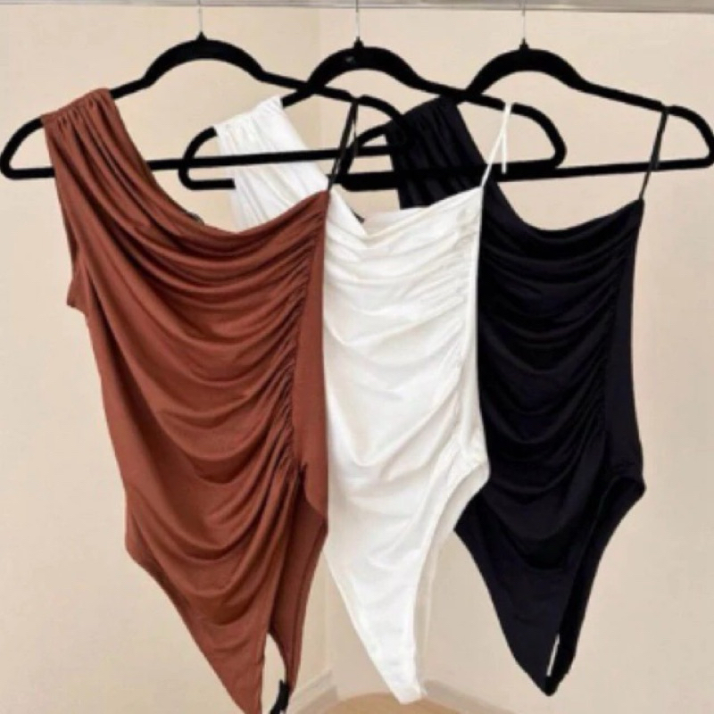 Body Mula manca Plissado Basica Formal Ombro só Moderno Elegante Drapeado Suplex Grosso